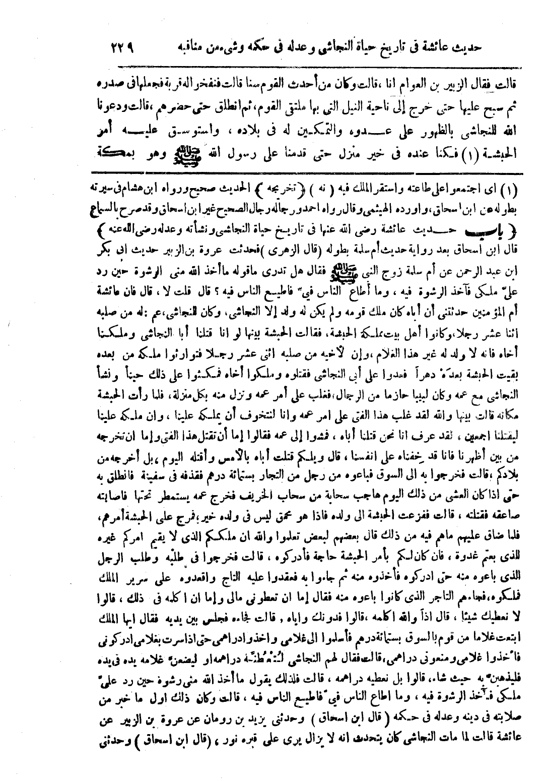 (1) أي اجتمعوا على طاعته واستقر الملك فيه (نه) (تخريجه) الحديث صحيح ورواه ابن هشام فى سيرته بطوله عن ابن اسحاق، واورده الهيثمى وقال رواه احمد ورجاله رجال الصحيح غير ابن اسحاق وقد صرح بالسماع (باب حديث عائشة رضي الله عنها فى تاريخ حياة النجاشى ونشأته وعدله رضي الله عنه) قال ابن اسحاق بعد رواية حديث أم سلمة بطوله (قال الزهرى) فحدثت عروة بن الزبير حديث ابى بكر ابن عبد الرحمن عن أم سلمة زوج النبى صلى الله عليه وسلم فقال هل تدرى ما قوله ما أخذ الله منى الرشوة حين رد علىّ ملكى فآخذ الرشوة فيه، وما أطاع الناس فيّ فاطيع الناس فيه؟ قال قلت لا، قال فان عائشة أم المؤمنين حدثتنى أن أباه كان ملك قومه ولم يكن له ولد إلا النجاشى، وكان النجاشى، عم: له من صلبه اثنا عشر رجلا، وكانوا أهل بيت مملكة الحبشة، فقالت الحبشة بينها لو انا قتلنا أبا النجاشى وملكنا أخاه فانه لا ولد له غير هذا الغلام، وإن لأخيه من صلبه اثنى عشر رجلا فتوارثوا ملكه من بعده بقيت الحبشة بعده دهرًا فعدوا على أبى النجاشى فقتلوه وملكوا أخاه فمكثوا على ذلك حينًا ونشأ النجاشى مع عمه وكان لبيبا حازما من الرجال، فغلب على أمر عمه ونزل منه بكل منزلة، فلما رأت الحبشة مكانه قالت بينها والله لقد غلب هذا الفتى على امر عمه وانا انتخوف أن يملكه علينا، وان ملكه علينا ليقتلنا اجمعين، لقد عرف انا نحن قتلنا أباه، فمشوا إلى عمه فقالوا إما أن تقتل هذا الفتى وإما ان نخرجه من بين أظهرنا فانا قد خفناه على انفسنا، قال ويلكم قتلت أباه بالأمس وأقتله اليوم، بل أخرجه من بلادكم، قالت فخرجوا به الى السوق فباعوه من رجل من التجار بستمائة درهم فقذفه فى سفينة فانطلق به حتى اذا كان العشى من ذلك اليوم هاجب سحابة من سحاب الخريف فخرج عمه يستمطر تحتها فأصابته صاعقه فقتلته، قالت ففزعت الحبشة الى ولده فاذا هو محمق ليس فى ولده خير؛ فمرج على الحبشة أمرهم، فلما ضاق عليهم ما هم فيه من ذلك قال بعضهم لبعض تعلموا والله ان ملككم الذى لا يقيم امركم غيره للذى بعتم غدوة، فان كان لكم بأمر الحبشة حاجة فأدركوه، قالت فخرجوا فى طلبه وطلب الرجل الذى باعوه منه حتى ادركوه فأخذوه منه ثم جاءوا به فعقدوا عليه التاج واقعدوه على سرير الملك فملكوه، فجاءهم التاجر الذى كانوا باعوه منه فقال إما ان تعطونى مالى وإما ان اكلمه فى ذلك، قالوا لا نعطيك شيئا، قال اذًا والله اكلمه، قالوا فدونك واياه، قالت فجاءه فجلس بين يديه فقال ايها الملك ابتعت غلاما من قوم بالسوق بستمائة درهم فأسلموا الى غلامى واخذوا دراهمى حتى اذا سرت بغلامى ادركونى فأخذوا غلامى ومنعونى دراهمى، قالت فقال لهم النجاشى لتعطنَّه دراهمه او ليضعنَّ غلامه يده فى يده فليذهبنّ به حيث شاء، قالوا بل نعطيه دراهمه، قالت فلذلك يقول ما أخذ الله منى رشوة حين رد علىّ ملكى فآخذ الرشوة فيه، وما اطاع الناس فيّ فاطيع الناس فيه، قالت وكان ذلك اول ما خبر من صلابته فى دينه وعدله فى حكمه (قال ابن اسحاق) وحدثنى يزيد بن رومان عن عروة بن الزبير عن عائشة قالت لما مات النجاشى كان يتحدث انه لا يزال يرى على قبره نور، (قال ابن إسحاق) وحدثني