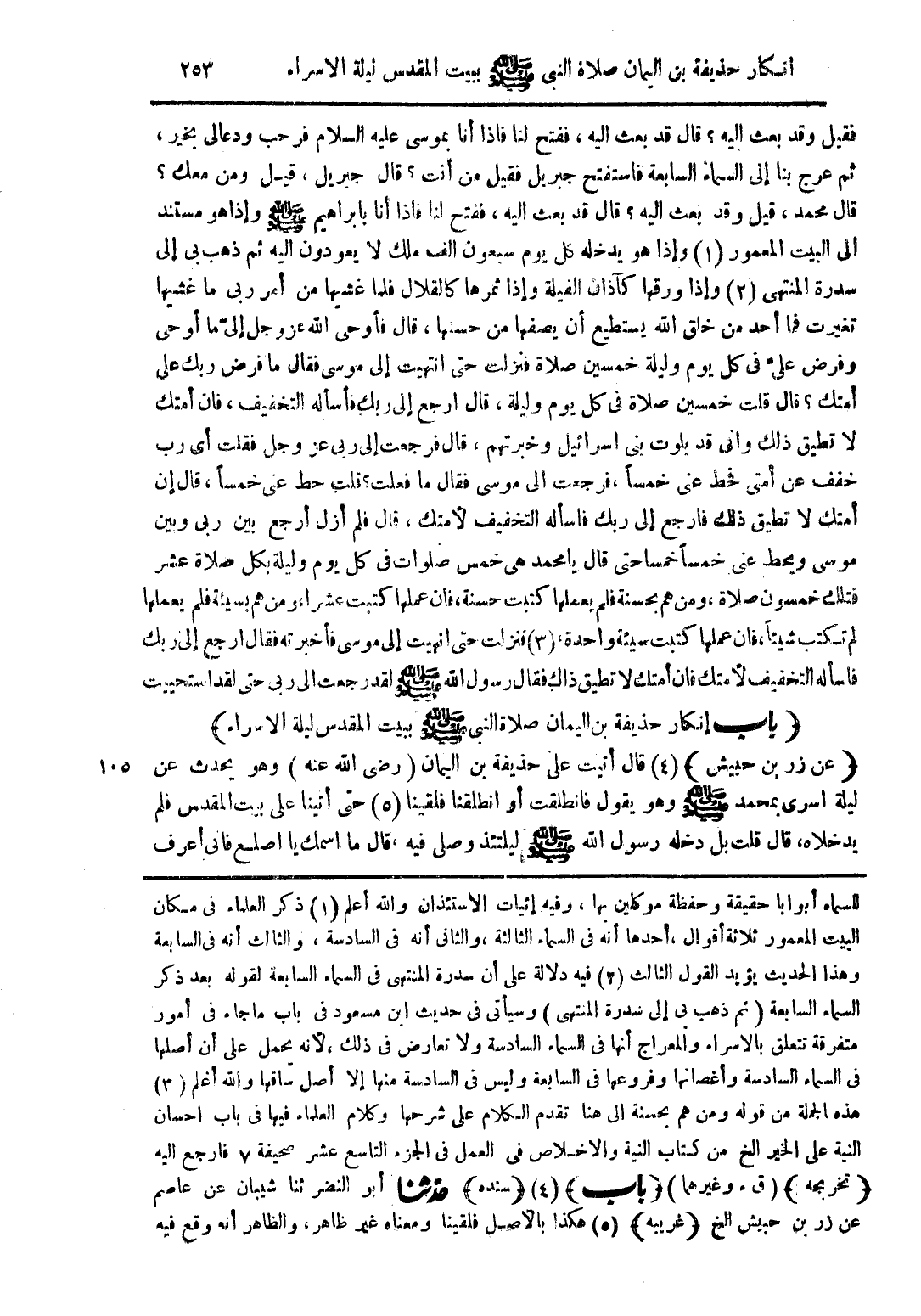 (عن زر بن حبيش) قال أتيت على حذيفة بن اليمان (رضي الله عنه) وهو يحدث عن ليلة اسرى بمحمد صلى الله عليه وسلم وهو يقول فانطلقت أو انطلقنا فلقينا حتى أتينا على بيت المقدس فلم يدخلاه، قال قلت بل دخله رسول الله صلى الله عليه وسلم ليلتئذ وصلى فيه، قال ما اسمك يا أصلع فإني أعرف