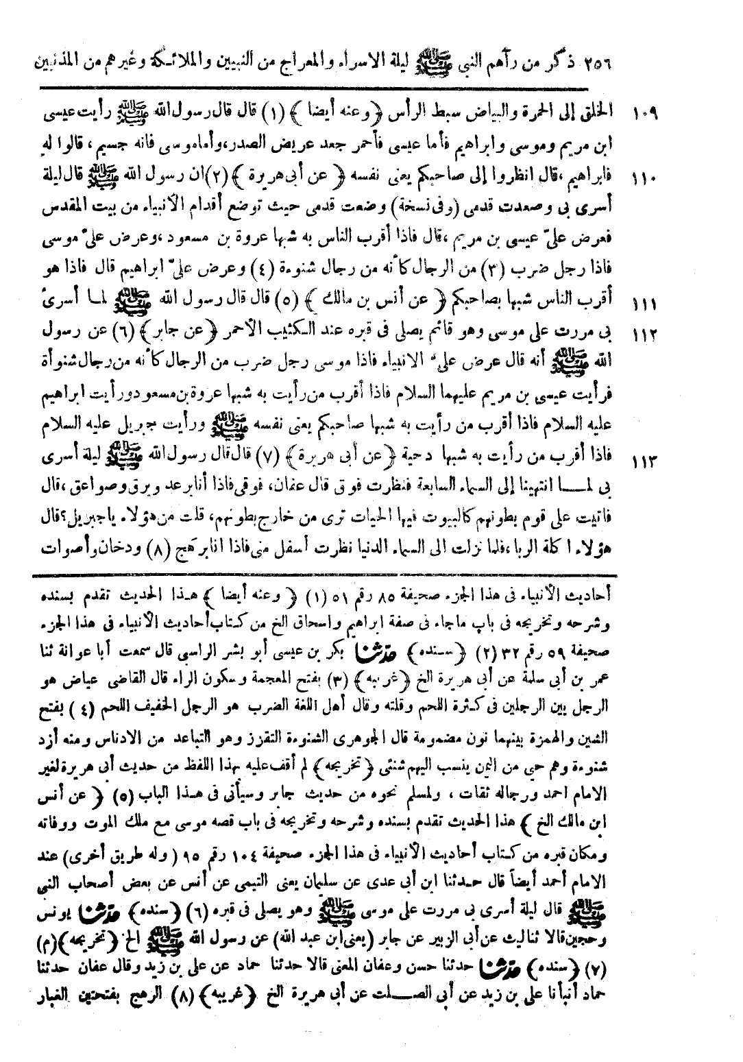 أحاديث الأنبياء فى هذا الجزء صحيفة 85 رقم 51 (1) (وعنه أيضا) هذا الحديث تقدم بسنده وشرحه وتخريجه فى باب ما جاء فى صفة ابراهيم واسحاق الخ من كتاب أحاديث الأنبياء فى هذا الجزء صحيفة 59 رقم 32 (2) (سنده) حدّثنا بكر بن عيسى أبو بشر الراسبى قال سمعت أبا عوانة ثنا عمر بن أبى سلمة عن أبى هريرة الخ (غريبه) (3) بفتح المعجمة وسكون الراء قال القاضى عياض هو الرجل بين الرجلين فى كثرة اللحم وقلته وقال أهل اللغة الضرب هو الرجل الخفيف اللحم (4) بفتح الشين والهمزة بينهما نون مضمومة قال الجوهرى الشنوءة التقزز وهو التباعد من الادناس ومنه أزد شنوءة وهم حي من اليمن ينسب اليهم شنئى (تخريجه) لم أقف عليه بهذا اللفظ من حديث أبى هريرة لغير الامام احمد ورجاله ثقات، ولمسلم نحوه من حديث جابر وسيأتى فى هذا الباب (5) (عن أنس ابن مالك الخ) هذا الحديث تقدم بسنده وشرحه وتخريجه فى باب قصه موسى مع ملك الموت ووفاته ومكان قبره من كتاب أحاديث الأنبياء فى هذا الجزء صحيفة 104 رقم 95 (وله طريق أخرى) عند الامام أحمد أيضًا قال حدثنا ابن أبى عدى عن سليمان يعنى التيمى عن أنس عن بعض أصحاب النبى صلى الله عليه وسلم قال ليلة أسرى بى مررت على موسى صلى الله عليه وسلم وهو يصلى فى قبره (6) (سنده) حدّثنا يونس وحجين قالا ثنا ليث عن أبى الزبير عن جابر (يعنى ابن عبد الله) عن رسول الله صلى الله عليه وسلم الخ (تخريجه) (م) (7) (سنده) حدّثنا حسن وعفان المعنى قالا حدثنا حماد عن على بن زيد وقال عفان حدثنا حماد أنبأنا على بن زيد عن أبى الصلت عن أبى هريرة الخ (غريبه) (8) الرهج بفتحتين الغبار