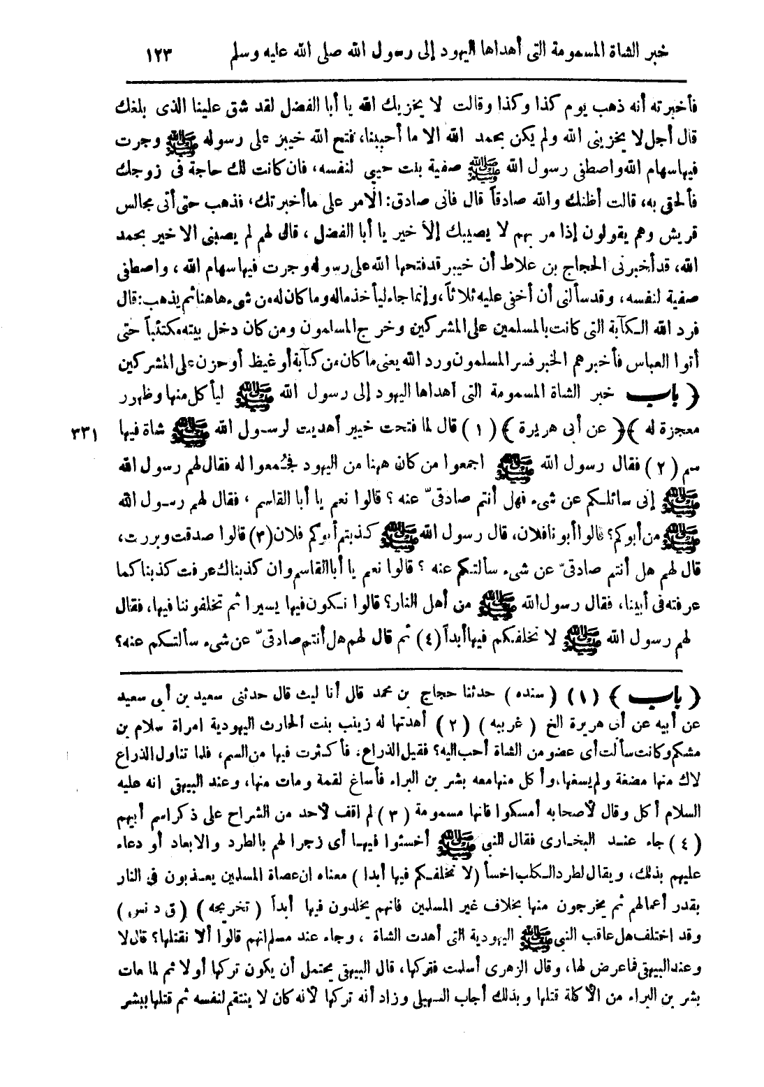 -[خبر الشاة المسمومة التى أهداها اليهود إلى رسول الله صلى الله عليه وسلم]-