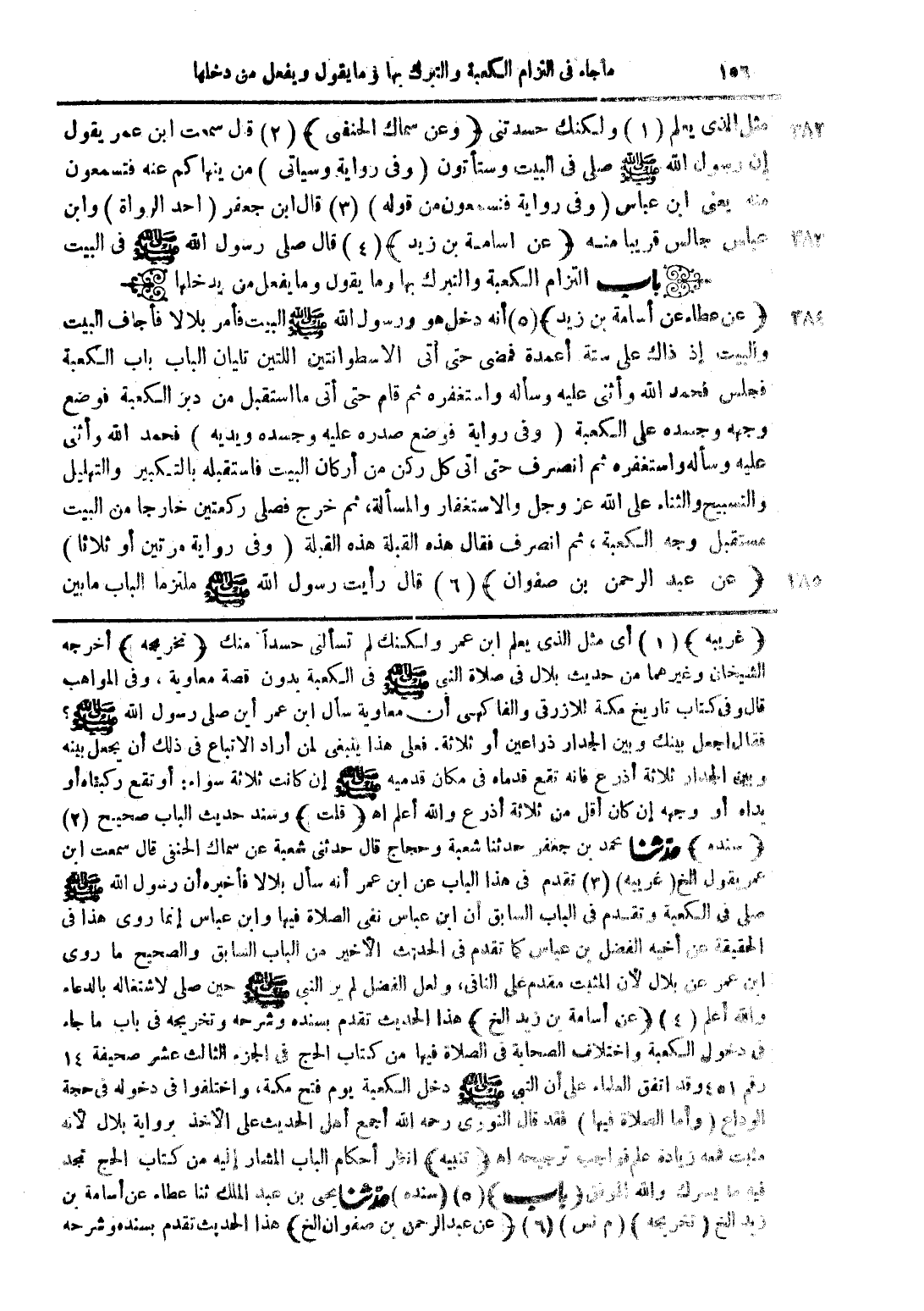 مثل الذي يعلم (1) ولكنك حسدتنى (وعن سماك الحنفى) (2) قال سمعت ابن عمر يقول إن رسول الله صلى الله عليه وسلم صلى فى البيت وستأتون (وفى رواية وسيأتى) من ينهاكم عنه فتسمعون منه يعنى ابن عباس (وفى رواية فتسمعون من قوله) (3) قال ابن جعفر (احد الرواة) وابن عباس جالس قريباً منه (عن أسامة بن زيد) (4) قال صلى رسول الله صلى الله عليه وسلم فى البيت