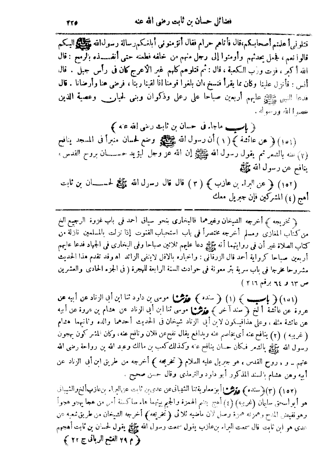 (152) (عن البراء بن عازب) (3) قال قال رسول الله صلى الله عليه وسلم لحسان بن ثابت أهج (4) المشركين فإن جبريل معك