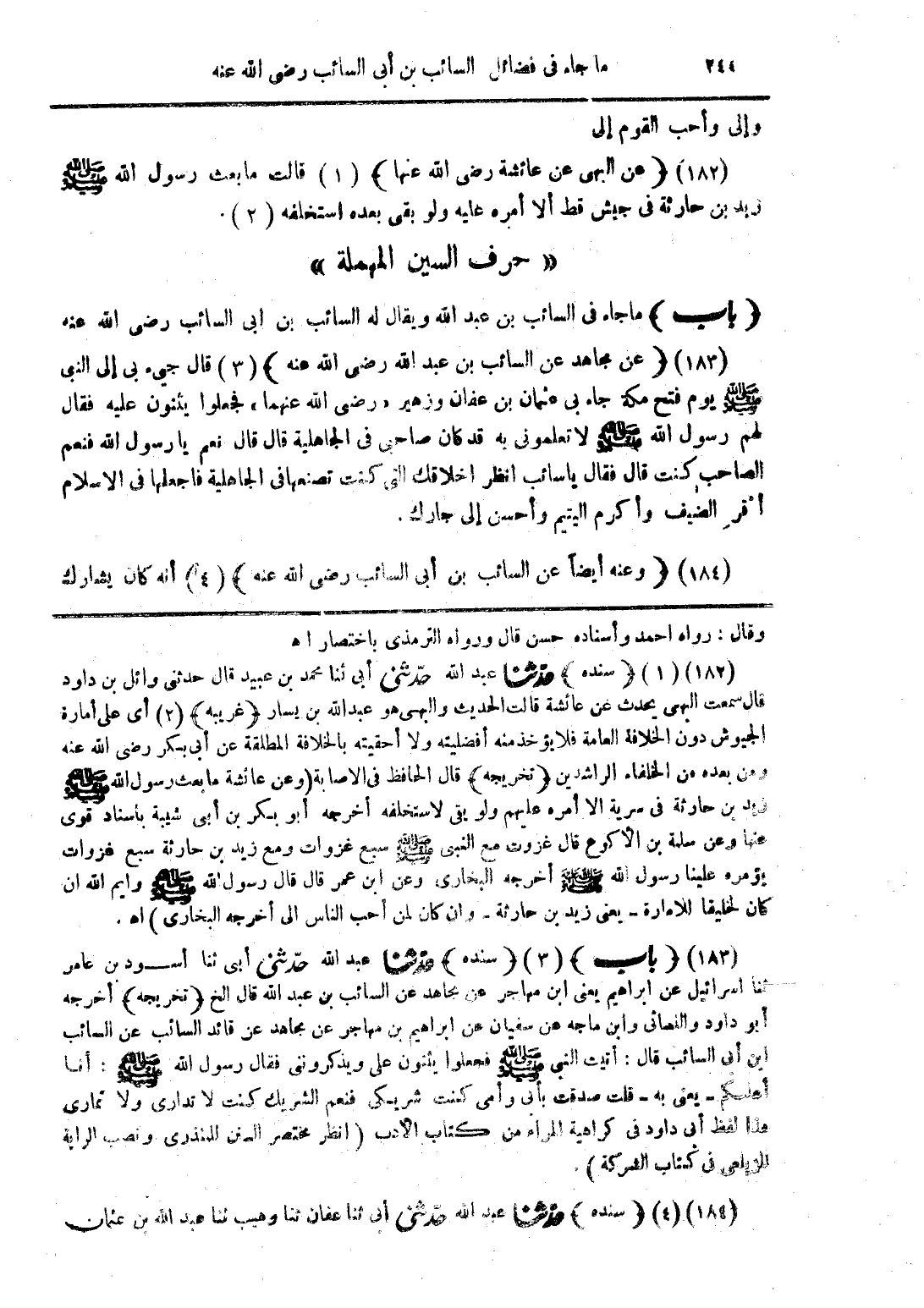 (184) (وعنه أيضاً عن السائب بن أبى السائب رضى الله عنه) (4) أنه كان يشارك