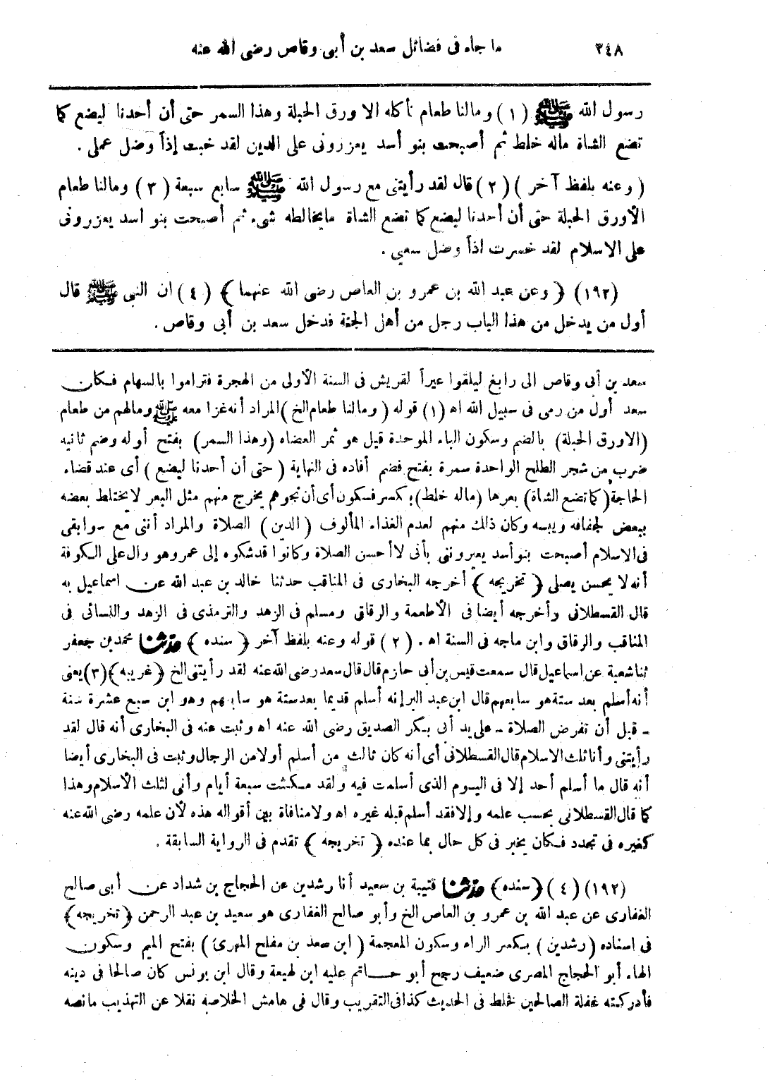 (192) (وعن عبد الله بن عمرو بن العاص رضى الله عنهما) ان النبى صلى الله عليه وسلم قال أول من يدخل من هذا الباب رجل من أهل الجنة فدخل سعد بن أبي وقاص.