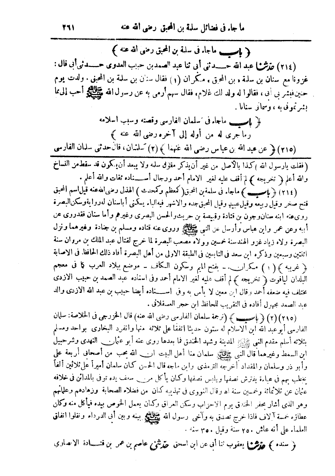 (215) (عن عبد الله بن عباس رضى الله عنهما) سلمان، قال حدثني سلمان الفارسي
