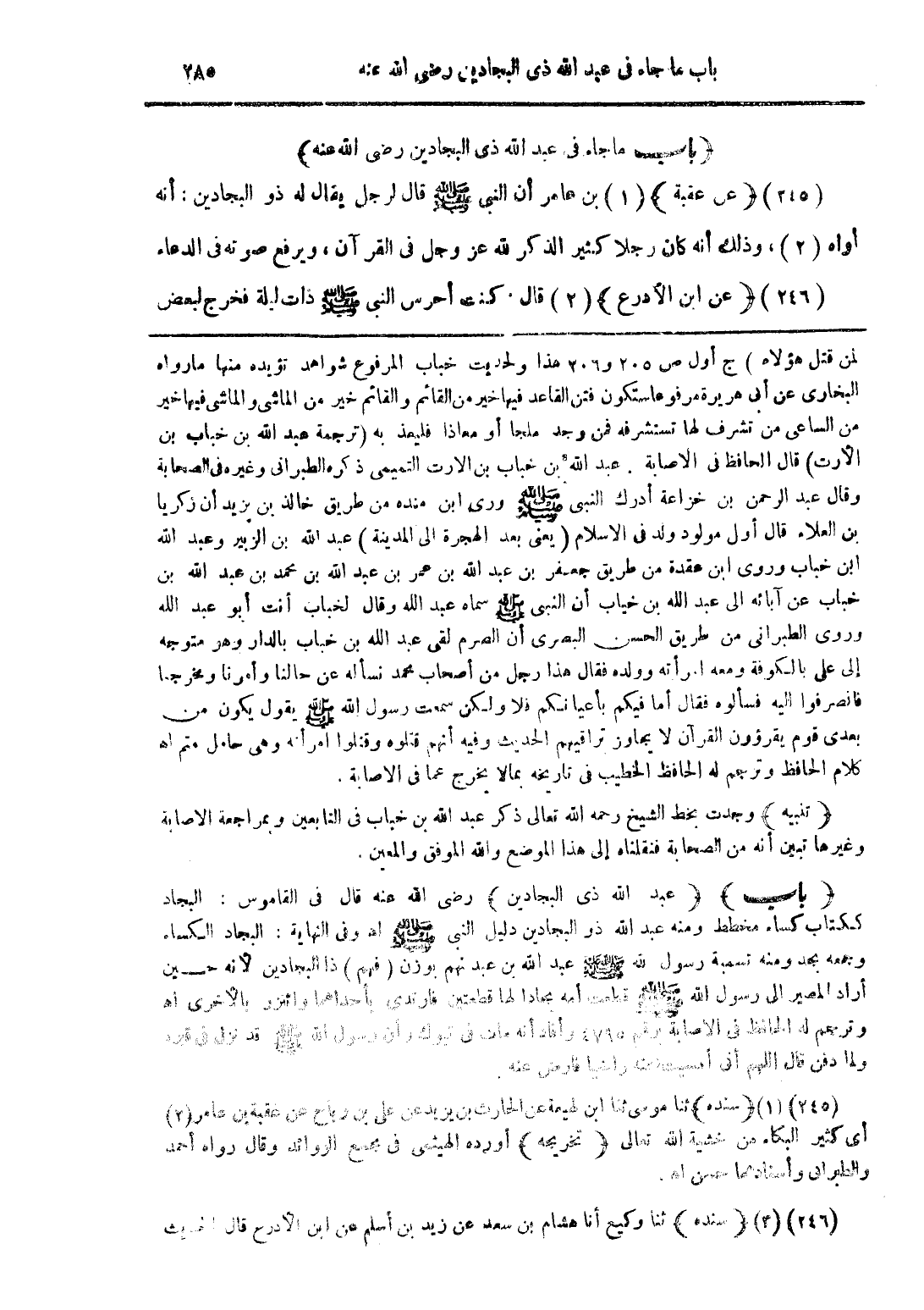 (تنبيه) وجدت بخط الشيخ رحمه الله تعالى ذكر عبد الله بن خباب فى التابعين وبمراجعة الاصابة وغيرها تبين أنه من الصحابة فنقلناه إلى هذا الموضع والله الموفق والمعين.