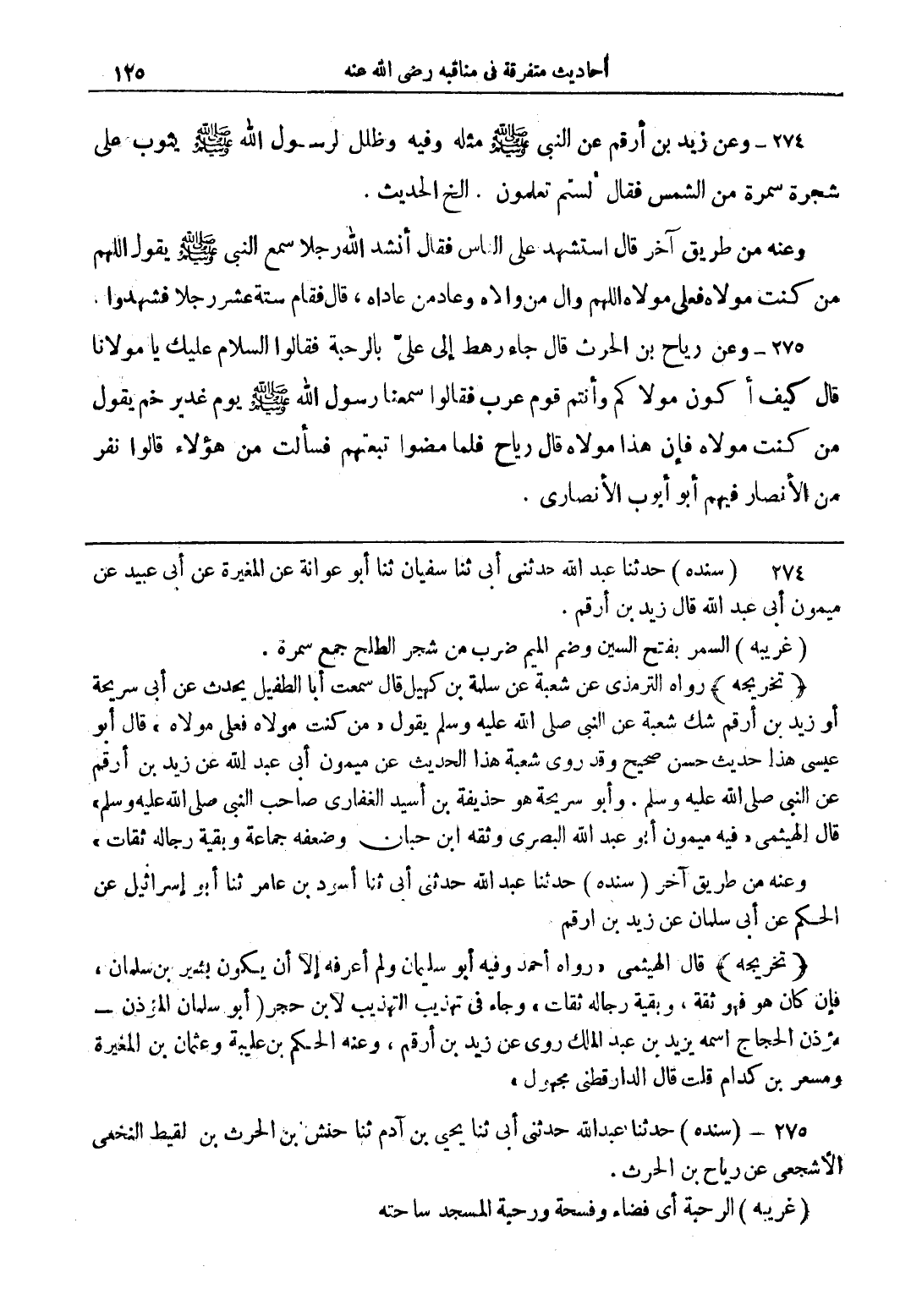 274 (سنده) حدثنا عبد الله حدثنى أبى ثنا سفيان ثنا أبو عوانة عن المغيرة عن أبى عبيد عن ميمون أبى عبد الله قال زيد بن أرقم.