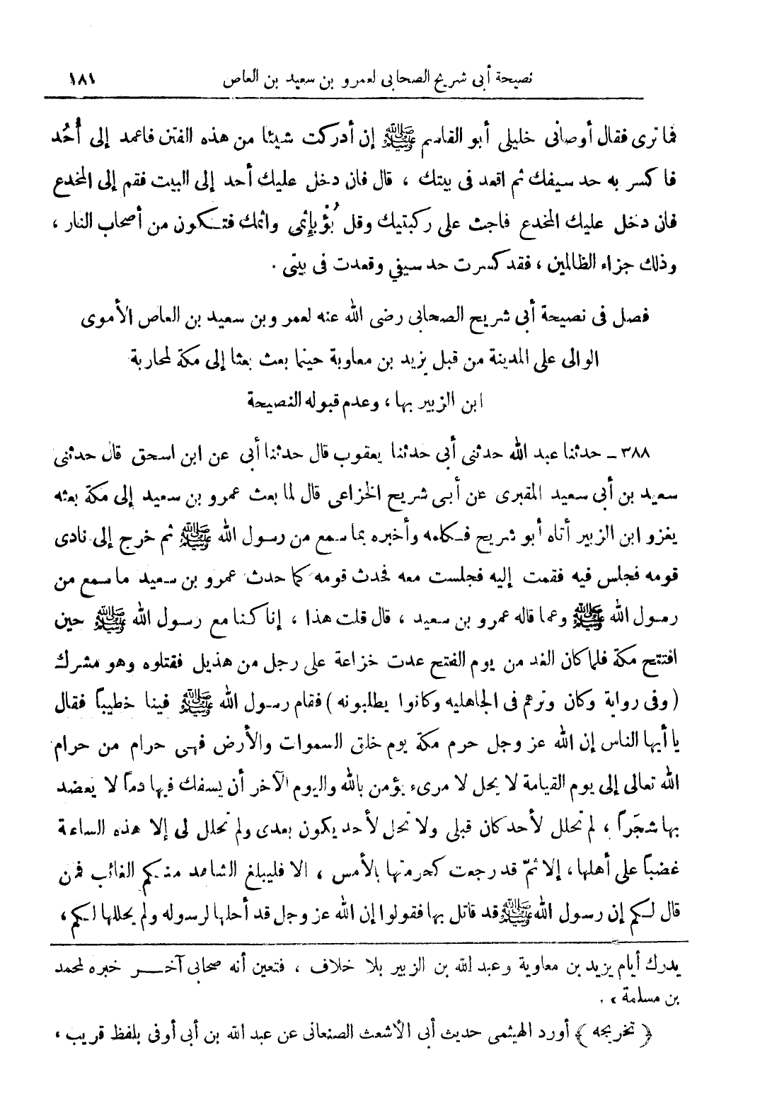 -[نصيحة أبي شريح الصحابي لعمرو بن سعيد بن العاص]-