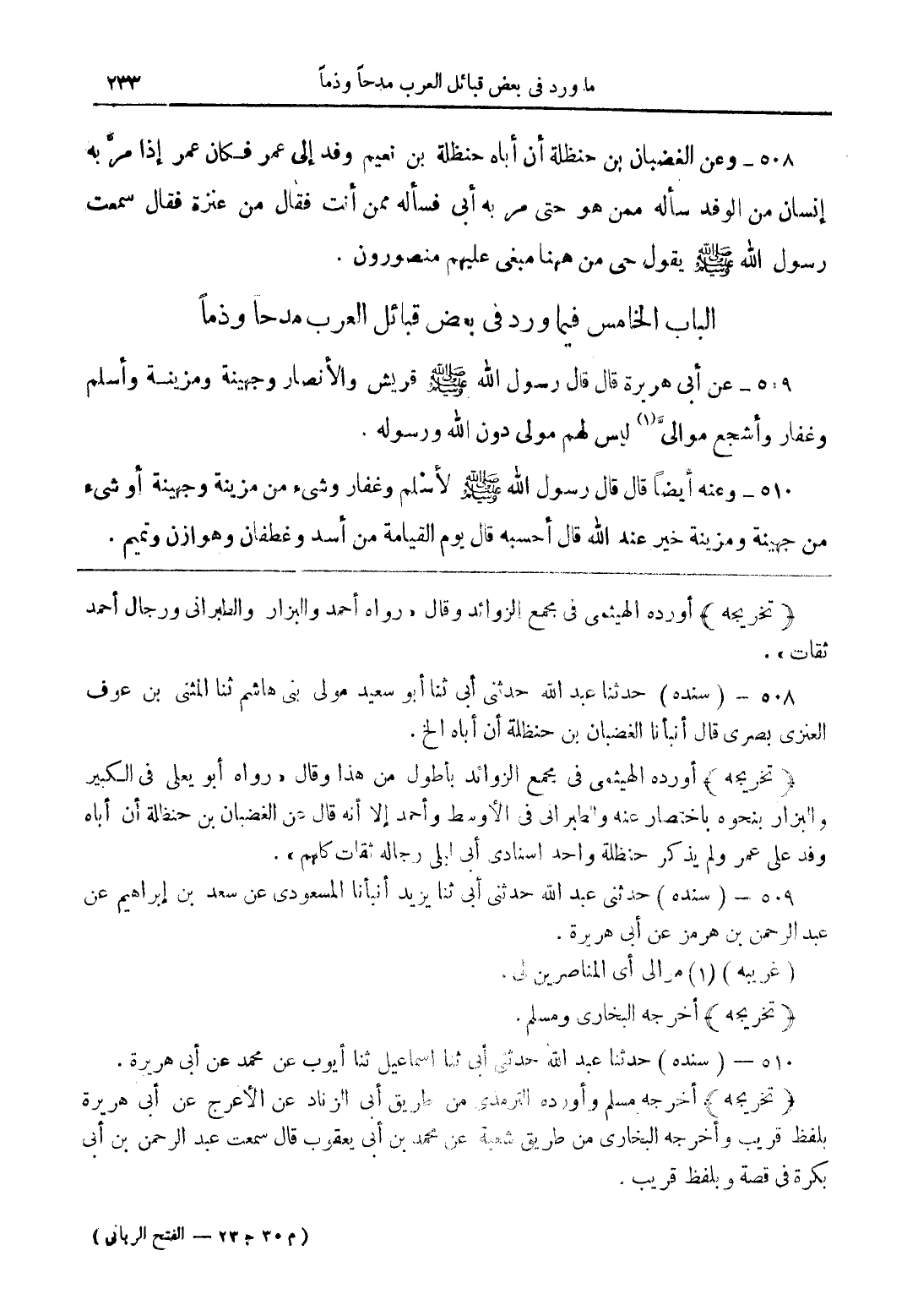 الباب الخامس فيما وردفي بعض قبائل العرب مدحًا وذمًا