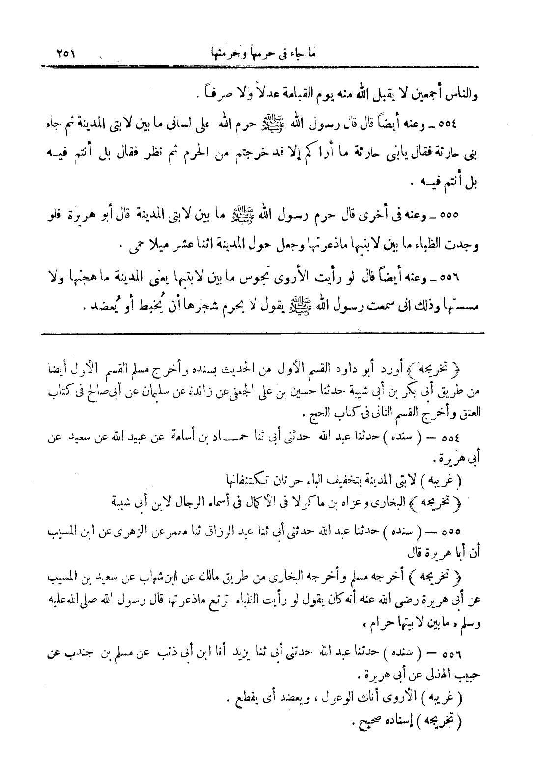 (تخريجه) أخرجه مسلم وأخرجه البخاري من طريق مالك عن ابن شهاب عن سعيد بن المسيب عن أبي هريرة رضي الله عنه أنه كان يقول لو رأيت الظباء ترتع ما ذعرتها قال رسول الله صلى الله عليه وسلم "ما بين لابتيها حرام"