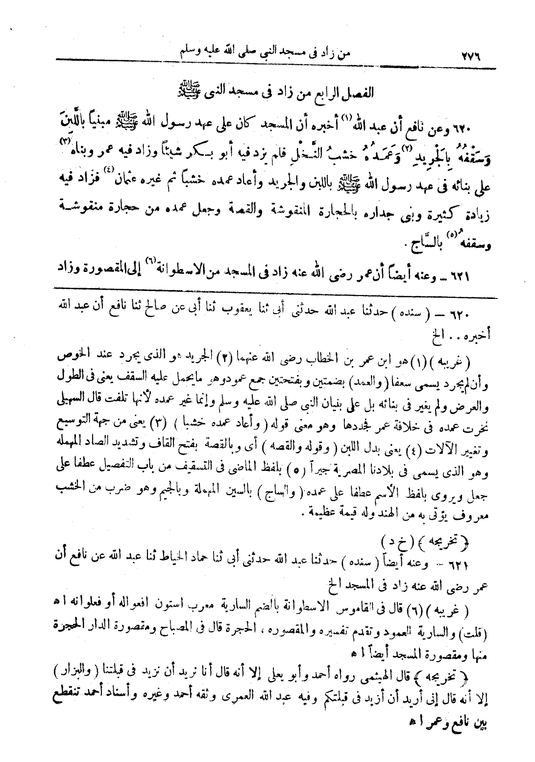 621 - وعنه أيضا (سنده) حدثنا عبد الله حدثني أبي ثنا حماد الخياط ثنا عبد الله عن نافع أن عمر رضي الله عنه زاد في المسجد الخ