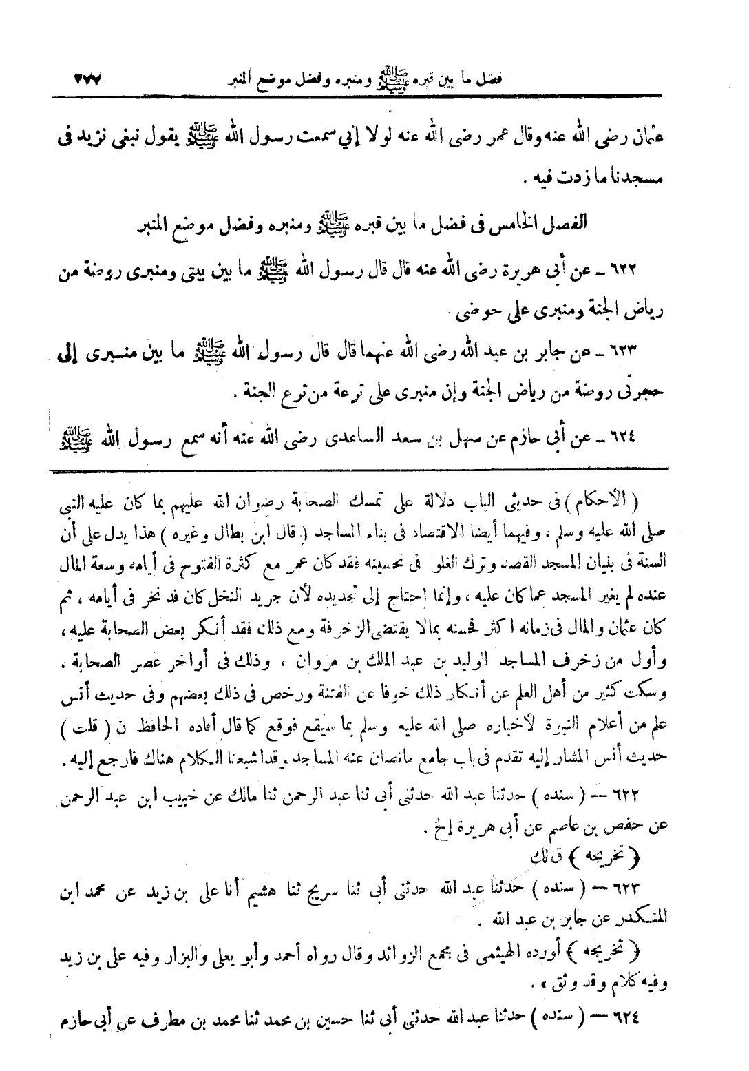 عثمان رضي الله عنه وقال عمر رضي الله عنه لولا أني سمعت رسول الله صلى الله عليه وسلم يقول نبغي نزيد في مسجدنا ما زدت فيه
