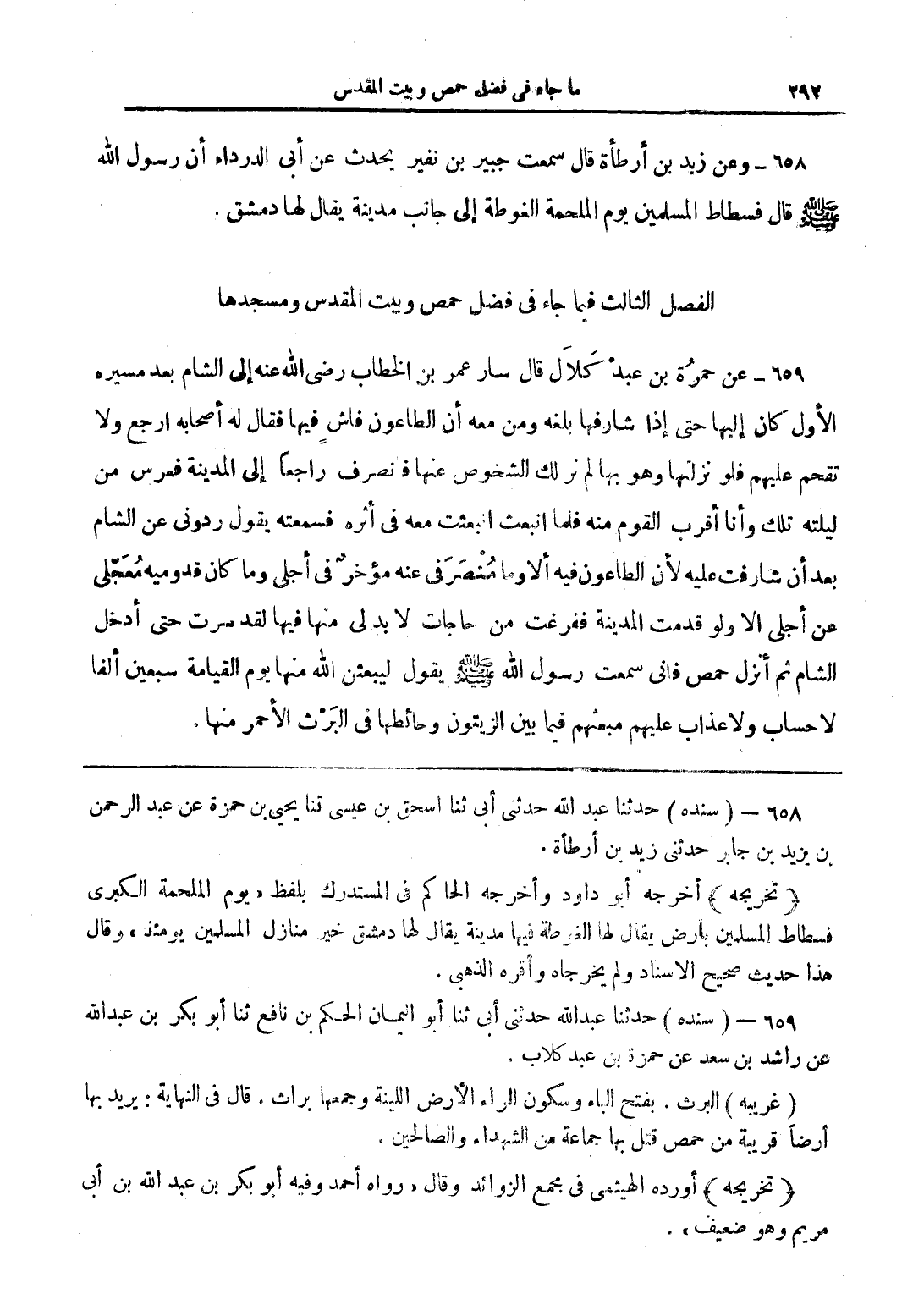 الفصل الثالث فيما جاء في فضل حمص وبيت المقدس ومسجدها