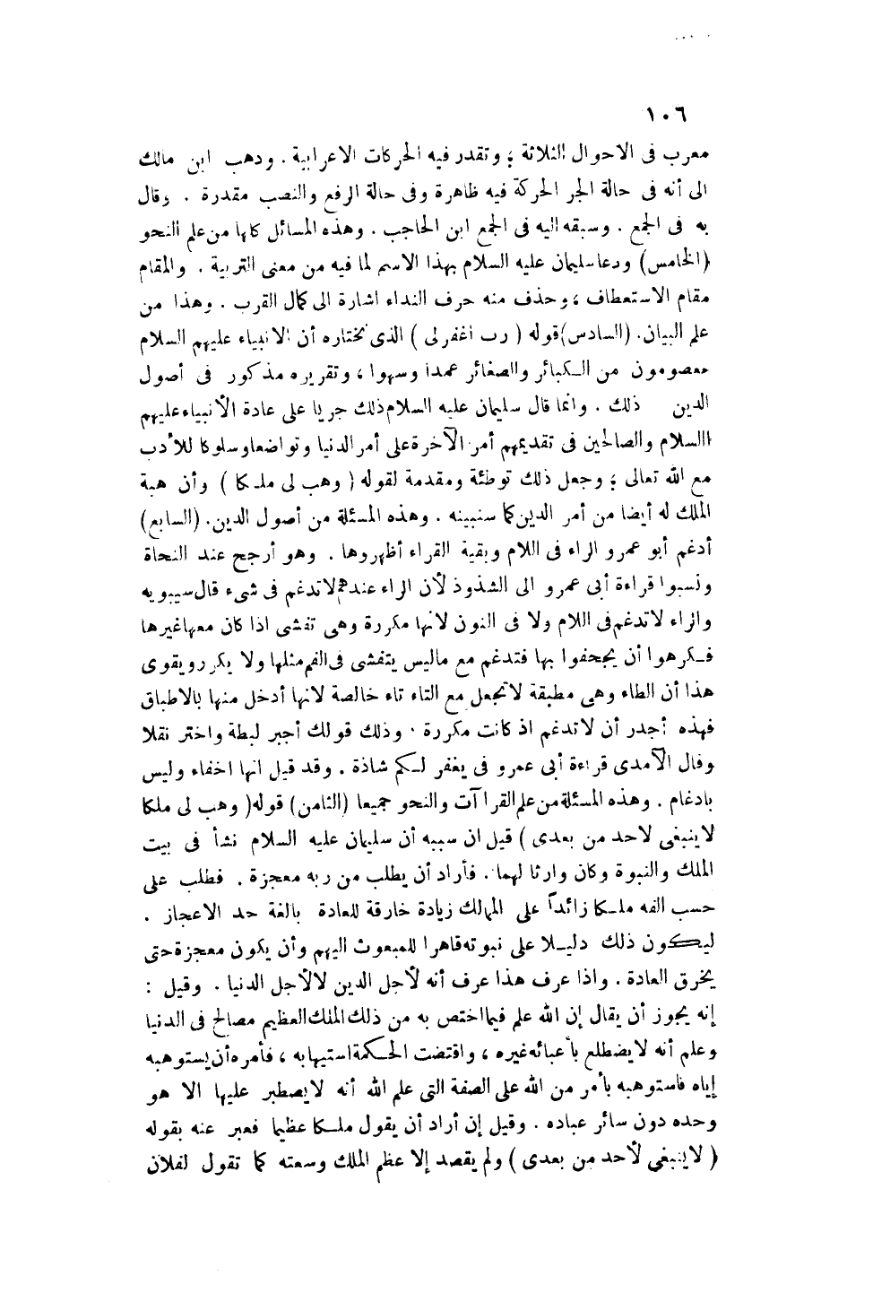 (الْخَامِسُ) : وَدَعَا سُلَيْمَانُ - عَلَيْهِ السَّلَامُ - بِهَذَا الِاسْمِ لِمَا فِيهِ مِنْ مَعْنَى التَّرْبِيَةِ. وَالْمَقَامُ مَقَامُ الِاسْتِعْطَافِ، وَحُذِفَ مِنْهُ حَرْفُ النِّدَاءِ إشَارَةً إلَى كَمَالِ الْقُرْبِ. وَهَذَا مِنْ عِلْمِ الْبَيَانِ.