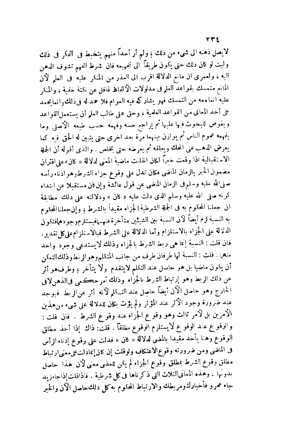 لَا يَصِلُ ذِهْنُهُ إلَى شَيْءٍ مِنْ ذَلِكَ؛ وَلَمْ أَرَ أَحَدًا مِنْهُمْ يَتَخَبَّطُ فِي الْفِكْرِ فِي ذَلِكَ وَلَّيْت لَوْ كَانَ ذَلِكَ حَتَّى يَكُونَ طَرِيقًا إلَى تَفْهِيمِهِ فَإِنَّ شَرْطَ الْفَهْمِ تَشَوُّفُ الذِّهْنِ إلَيْهِ، وَلَعَمْرِي إنَّ مَانِعَ الدَّلَالَةِ أَقْرَبُ إلَى الْعُذْرِ مِنْ الْمُنْكَرِ عَلَيْهِ فِي الْعِلْمِ لِأَنَّ الْمَانِعَ مُتَمَسِّكٌ بِقَوَاعِد الْعِلْمِ فِي مَدْلُولَاتِ الْأَلْفَاظِ غَافِلٌ عَنْ نُكْتَةٍ خَفِيَّةٍ، وَالْمُنْكَرُ عَلَيْهِ إنَّمَا مَعَهُ مِنْ التَّمَسُّكِ فَهُوَ يُشَارِكُهُ فِيهِ الْعَوَامُّ فَلَا حَمْدَ لَهُ فِي ذَلِكَ وَإِنَّمَا يُحْمَدُ عَلَى أَخْذِ الْمَعَانِي مِنْ الْقَوَاعِدِ الْعِلْمِيَّةِ، وَحَقٌّ عَلَى طَالِبِ الْعِلْمِ أَنْ يَسْتَعْمِلَ الْقَوَاعِدَ وَيَغُوصَ لِلْبُحُوثِ فِيهَا عَلَيْهَا ثُمَّ يُرَاجِعَ حِسَّهُ وَفَهْمَهُ حَسْبَ طَبْعِهِ الْأَصْلِيِّ وَمَا يَفْهَمُهُ عُمُومُ النَّاسِ ثُمَّ يُوَازِنَ بَيْنَهُمَا مَرَّةً بَعْدَ أُخْرَى حَتَّى يَتَبَيَّنَ لَهُ الْحَقُّ فِيهِ كَمَا يَعْرِضُ الذَّهَبَ عَلَى الْمِحَكِّ وَيُعَلِّقُهُ ثُمَّ يَعْرِضُهُ حَتَّى يَخْلُصَ.