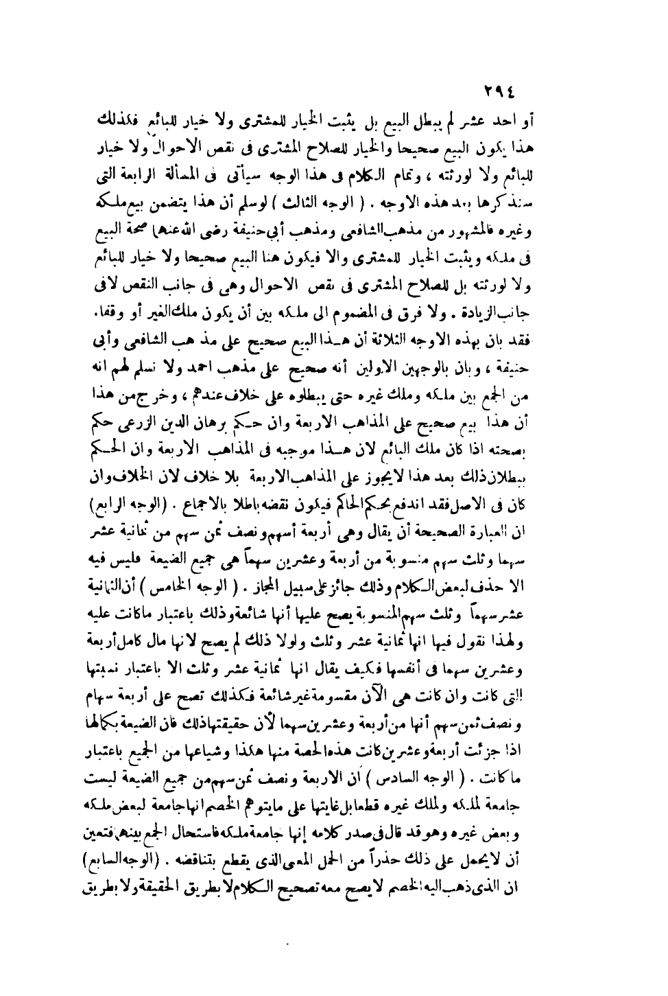 (الْوَجْهُ الْخَامِسُ) : أَنَّ الثَّمَانِيَةَ عَشَرَ سَهْمًا وَثُلُثَ سَهْمٍ الْمَنْسُوبَةَ يَصِحُّ عَلَيْهَا أَنَّهَا شَائِعَةٌ، وَذَلِكَ بِاعْتِبَارِ مَا كَانَتْ عَلَيْهِ وَلِهَذَا نَقُولُ فِيهَا: إنَّهَا ثَمَانِيَةَ عَشَرَ وَثُلُثٌ، وَلَوْلَا ذَلِكَ لَمْ يَصِحَّ؛ لِأَنَّهَا مَالٌ كَامِلٌ أَرْبَعَةٌ وَعِشْرُونَ سَهْمًا فِي أَنْفُسِهَا فَكَيْفَ يُقَالُ: إنَّهَا ثَمَانِيَةَ عَشَرَ وَثُلُثٌ إلَّا بِاعْتِبَارِ نِسْبَتِهَا الَّتِي كَانَتْ، وَإِنْ كَانَتْ هِيَ الْآنَ مَقْسُومَةً غَيْرَ شَائِعَةٍ، فَكَذَلِكَ تَصِحُّ عَلَى أَرْبَعَةِ سِهَامٍ وَنِصْفِ ثُمُنِ سَهْمٍ أَنَّهَا مِنْ أَرْبَعَةٍ وَعِشْرِينَ سَهْمًا؛ لِأَنَّ حَقِيقَتَهَا ذَلِكَ: فَإِنَّ الضَّيْعَةَ بِكَمَالِهَا إذَا جُزِّئَتْ أَرْبَعَةً وَعِشْرِينَ كَانَتْ هَذِهِ الْحِصَّةُ مِنْهَا هَكَذَا، وَشِيَاعُهَا مِنْ الْجَمِيعِ بِاعْتِبَارِ مَا كَانَتْ.