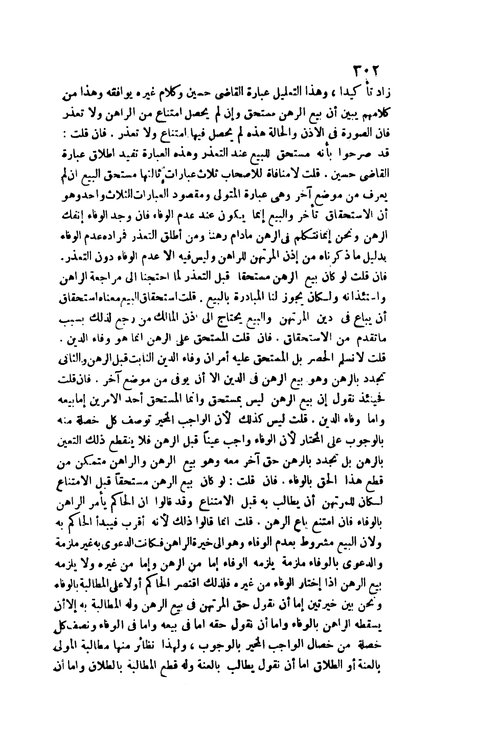 قُلْت لَا نُسَلِّمُ الْحَصْرَ بَلْ الْمُسْتَحَقُّ عَلَيْهِ أَمْرَانِ: وَفَاءُ الدَّيْنِ الثَّابِتِ قَبْلَ الرَّهْنِ، وَالثَّانِي تَجَدُّدٌ بِالرَّهْنِ، وَهُوَ بَيْعُ الرَّهْنِ فِي الدَّيْنِ إلَّا أَنْ يُوَفَّى مِنْ مَوْضِعٍ آخَرَ. فَإِنْ قُلْت: فَحِينَئِذٍ نَقُولُ: إنَّ بَيْعَ الرَّهْنِ لَيْسَ بِمُسْتَحَقٍّ، وَإِنَّمَا الْمُسْتَحَقُّ أَحَدُ الْأَمْرَيْنِ إمَّا بَيْعُهُ، وَإِمَّا وَفَاءُ الدَّيْنِ. قُلْت: لَيْسَ كَذَلِكَ؛ لِأَنَّ الْوَاجِبَ الْمُخَيَّرَ تُوصَفُ كُلُّ خُصْلَةٍ مِنْهُ بِالْوُجُوبِ عَلَى الْمُخْتَارِ؛ لِأَنَّ الْوَفَاءَ وَاجِبٌ عَيْنًا قَبْلَ الرَّهْنِ فَلَا يَنْقَطِعُ ذَلِكَ التَّعَيُّنُ بِالرَّهْنِ بَلْ تَجَدَّدَ بِالرَّهْنِ حَقٌّ آخَرُ مَعَهُ، وَهُوَ بَيْعُ الرَّهْنِ، وَالرَّاهِنُ مُتَمَكِّنٌ مِنْ قَطْعِ هَذَا الْحَقِّ بِالْوَفَاءِ. فَإِنْ قُلْت: لَوْ كَانَ بَيْعُ الرَّهْنِ مُسْتَحَقًّا قَبْلَ الِامْتِنَاعِ لَكَانَ لِلْمُرْتَهِنِ أَنْ يُطَالِبَ بِهِ قَبْلَ الِامْتِنَاعِ، وَقَدْ قَالُوا: إنَّ الْحَاكِمَ يَأْمُرُ الرَّاهِنَ بِالْوَفَاءِ، فَإِنْ امْتَنَعَ بَاعَ الرَّهْنَ. قُلْت: إنَّمَا قَالُوا ذَلِكَ؛ لِأَنَّهُ أَقْرَبُ فَيَبْدَأُ الْحَاكِمُ بِهِ وَلِأَنَّ الْبَيْعَ مَشْرُوطٌ بِعَدَمِ الْوَفَاءِ، وَهُوَ إلَى خِيرَةِ الرَّاهِنِ فَكَانَتْ الدَّعْوَى بِهِ غَيْرَ مُلْزِمَةٍ، وَالدَّعْوَى بِالْوَفَاءِ مُلْزِمَةً يَلْزَمَهُ الْوَفَاءُ إمَّا مِنْ الرَّهْنِ، وَإِمَّا مِنْ غَيْرِهِ وَلَا يَلْزَمُهُ بَيْعُ الرَّهْنِ إذَا اخْتَارَ الْوَفَاءَ مِنْ غَيْرِهِ فَلِذَلِكَ اقْتَصَرَ الْحَاكِمُ أَوَّلًا عَلَى الْمُطَالَبَةِ بِالْوَفَاءِ وَنَحْنُ بَيْنَ خِيرَتَيْنِ: إمَّا أَنْ نَقُولَ: حَقُّ الْمُرْتَهِنِ فِي بَيْعِ الرَّهْنِ وَلَهُ الْمُطَالَبَةُ بِهِ إلَّا أَنْ يُسْقِطَهُ الرَّاهِنُ بِالْوَفَاءِ، وَإِمَّا أَنْ نَقُولَ: حَقُّهُ إمَّا فِي بَيْعِهِ، وَإِمَّا فِي الْوَفَاءِ وَنَصِفُ كُلِّ خَصْلَةٍ مِنْ خِصَالِ الْوَاجِبِ الْمُخَيَّرِ بِالْوُجُوبِ، وَلِهَذَا نَظَائِرُ مِنْهَا مُطَالَبَةُ الْمَوْلَى بِالْعُنَّةِ، أَوْ الطَّلَاقِ إمَّا أَنْ نَقُولَ: يُطَالَبُ بِالْعُنَّةِ وَلَهُ قَطْعُ الْمُطَالَبَةِ بِالطَّلَاقِ، وَإِمَّا أَنْ