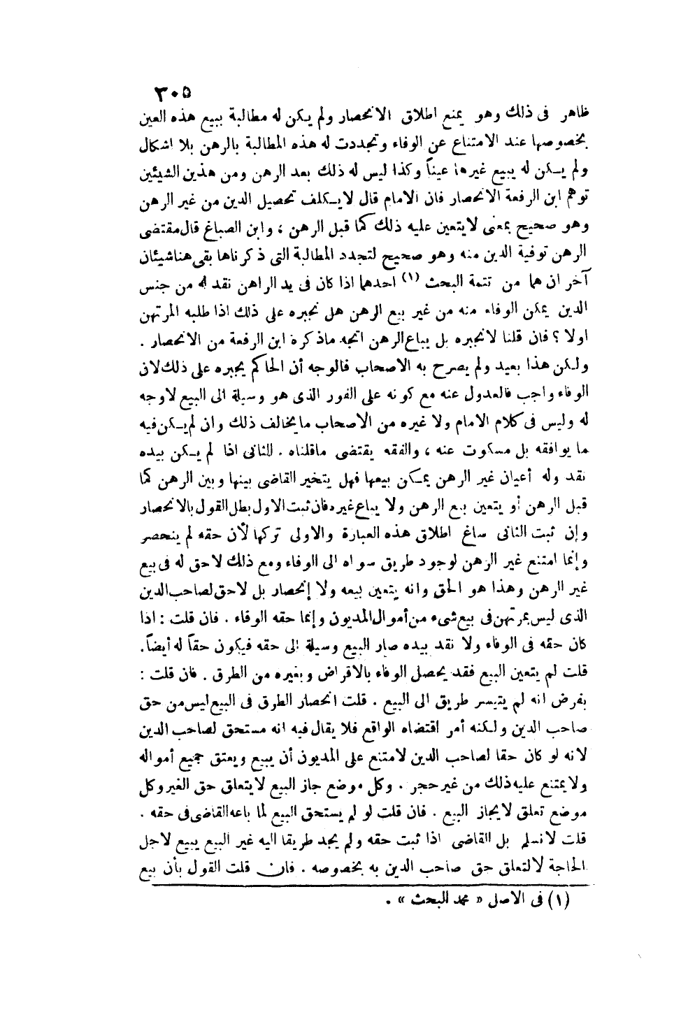 وَهُوَ يَمْنَعُ إطْلَاقَ الِانْحِصَارِ وَلَمْ يَكُنْ لَهُ مُطَالَبَةٌ بِبَيْعِ هَذِهِ الْعَيْنِ بِخُصُوصِهَا عِنْدَ الِامْتِنَاعِ عَنْ الْوَفَاءِ وَتَجَدَّدَتْ لَهُ هَذِهِ الْمُطَالَبَةُ بِالرَّهْنِ بِلَا إشْكَالٍ وَلَمْ يَكُنْ لَهُ يَبِيعُ غَيْرَهَا عَيْنًا، وَكَذَا لَيْسَ لَهُ ذَلِكَ بَعْدَ الرَّهْنِ، وَمِنْ هَذَيْنِ الشَّيْئَيْنِ تَوَهَّمَ ابْنُ الرِّفْعَةِ الِانْحِصَارَ، فَإِنَّ الْإِمَامَ قَالَ: لَا يُكَلَّفُ تَحْصِيلُ الدَّيْنِ مِنْ غَيْرِ الرَّهْنِ، وَهُوَ صَحِيحٌ بِمَعْنَى لَا يَتَعَيَّنُ عَلَيْهِ ذَلِكَ كَمَا قَبْلَ الرَّهْنِ وَابْنُ الصَّبَّاغِ قَالَ مُقْتَضَى الرَّهْنِ تَوْفِيَةُ الدَّيْنِ مِنْهُ، وَهُوَ صَحِيحٌ لِتَجَدُّدِ الْمُطَالَبَةِ الَّتِي ذَكَرْنَاهَا بَقِيَ هُنَا شَيْئَانِ آخَرَانِ هُمَا مِنْ تَتِمَّةِ الْبَحْثِ.