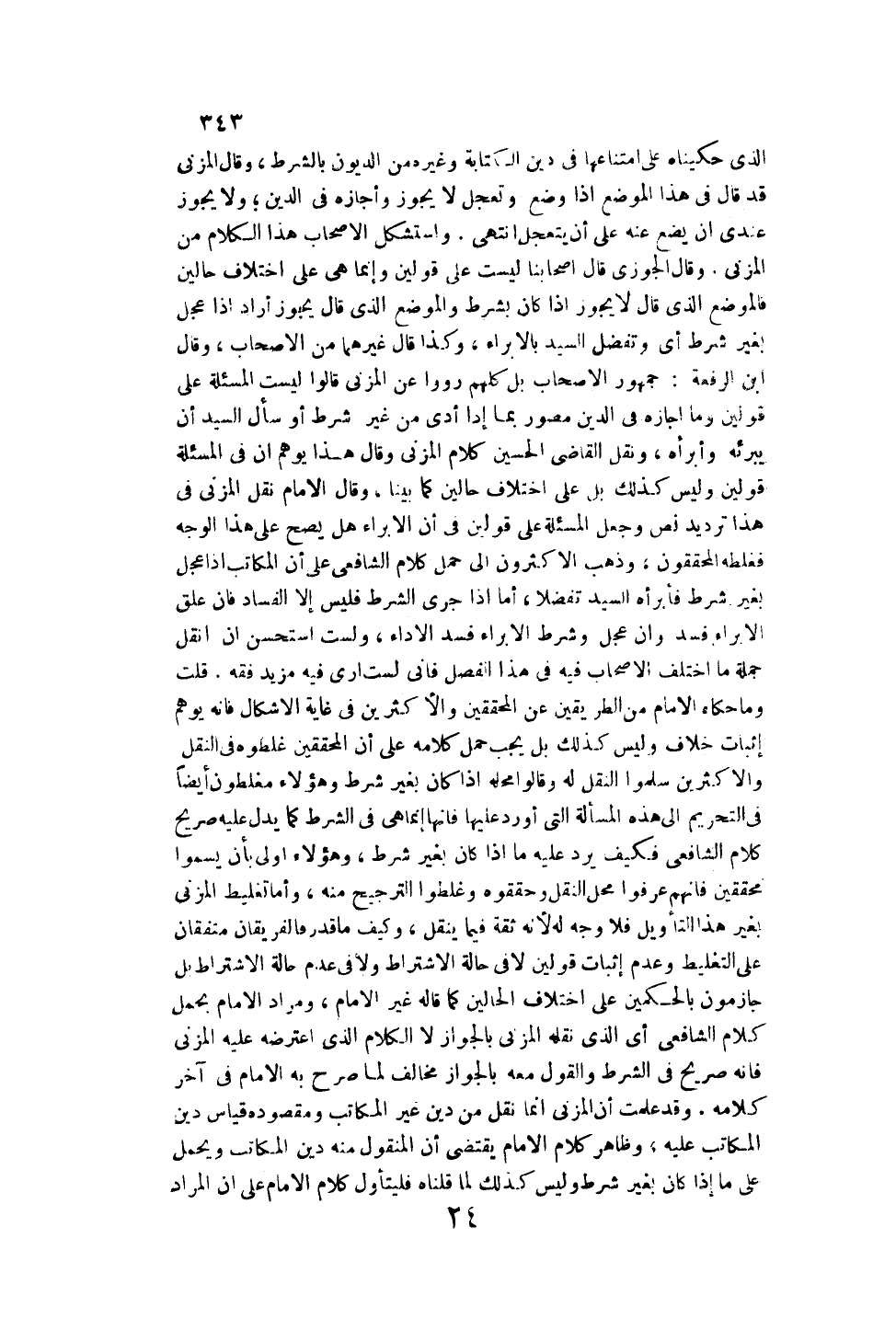 أَمَّا تَغْلِيطُ الْمُزَنِيِّ بِغَيْرِ هَذَا التَّأْوِيلِ فَلَا وَجْهَ لَهُ؛ لِأَنَّهُ ثِقَةٌ فِيمَا يَنْقُلُ، وَكَيْف مَا قُدِّرَ فَالْفَرِيقَانِ مُتَّفِقَانِ عَلَى التَّغْلِيطِ، وَعَدَمِ إثْبَاتِ قَوْلَيْنِ لَا فِي حَالَةِ الِاشْتِرَاطِ، وَلَا فِي عَدَمِ حَالَةِ الِاشْتِرَاطِ بَلْ جَازِمُونَ بِالْحُكْمَيْنِ عَلَى اخْتِلَافِ الْحَالَيْنِ كَمَا قَالَهُ غَيْرُ الْإِمَامِ، وَمُرَادُ الْإِمَامِ بِحَمْلِ كَلَامِ الشَّافِعِيِّ أَيْ الَّذِي نَقَلَهُ الْمُزَنِيّ بِالْجَوَازِ لَا الْكَلَامَ الَّذِي اعْتَرَضَهُ عَلَيْهِ الْمُزَنِيّ فَإِنَّهُ صَرِيحٌ فِي الشَّرْطِ، وَالْقَوْلُ مَعَهُ بِالْجَوَازِ مُخَالِفٌ لِمَا صَرَّحَ بِهِ الْإِمَامُ فِي آخِرِ كَلَامِهِ وَقَدْ عَلِمْت أَنَّ الْمُزَنِيَّ إنَّمَا نَقَلَ مِنْ دَيْنِ غَيْرِ الْمُكَاتَبِ، وَمَقْصُودُهُ قِيَاسُ دَيْنِ الْمُكَاتَبِ عَلَيْهِ، وَظَاهِرُ كَلَامِ الْإِمَامِ يَقْتَضِي أَنَّ الْمَنْقُولَ مِنْهُ دَيْنُ الْمُكَاتَبِ، وَيُحْمَلُ عَلَى مَا إذَا كَانَ بِغَيْرِ شَرْطٍ، وَلَيْسَ كَذَلِكَ لِمَا قُلْنَاهُ فَلْيَتَأَوَّلْ كَلَامَ الْإِمَامِ عَلَى أَنَّ الْمُرَادَ