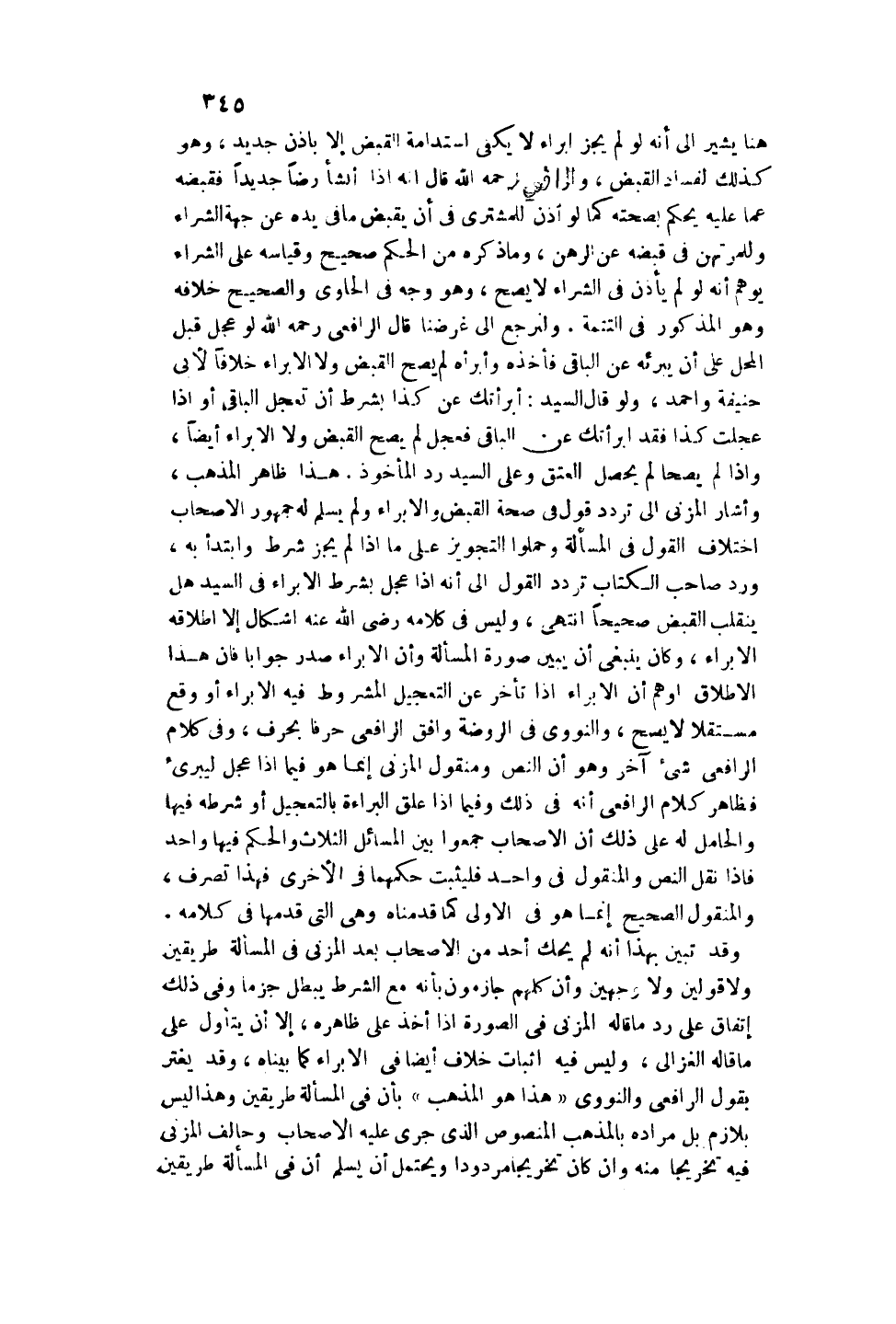 وَقَدْ تَبَيَّنَ بِهَذَا أَنَّهُ لَمْ يَحْكِ أَحَدٌ مِنْ الْأَصْحَابِ بَعْدَ الْمُزَنِيِّ فِي الْمَسْأَلَةِ طَرِيقَيْنِ، وَلَا قَوْلَيْنِ، وَلَا وَجْهَيْنِ، وَأَنَّ كُلَّهُمْ جَازِمُونَ بِأَنَّهُ مَعَ الشَّرْطِ يَبْطُلُ جَزْمًا، وَفِي ذَلِكَ اتِّفَاقٌ عَلَى رَدِّ مَا قَالَهُ الْمُزَنِيّ فِي الصُّورَةِ إذَا أَخَذَ عَلَى ظَاهِرِهِ، إلَّا أَنْ يَتَأَوَّلَ عَلَى مَا قَالَهُ الْغَزَالِيُّ، وَلَيْسَ فِيهِ إثْبَاتُ خِلَافٍ أَيْضًا فِي الْإِبْرَاءِ كَمَا بَيَّنَّاهُ، وَقَدْ يُغْتَرُّ بِقَوْلِ الرَّافِعِيِّ وَالنَّوَوِيِّ " هَذَا هُوَ الْمَذْهَبُ " بِأَنَّ فِي الْمَسْأَلَةِ طَرِيقَيْنِ، وَهَذَا لَيْسَ بِلَازِمٍ بَلْ مُرَادُهُ بِالْمَذْهَبِ الْمَنْصُوصِ الَّذِي جَرَى عَلَيْهِ الْأَصْحَابُ، وَحَالَفَ الْمُزَنِيّ فِيهِ تَخْرِيجًا مِنْهُ، وَإِنْ كَانَ تَخْرِيجًا مَرْدُودًا، وَيُحْتَمَلُ أَنْ يُسَلِّمَ أَنَّ فِي الْمَسْأَلَةِ طَرِيقَيْنِ