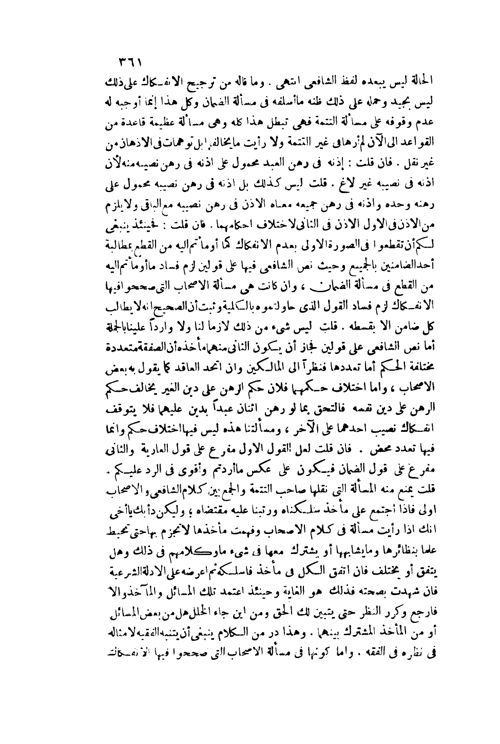 وَهَذَا دُرٌّ مِنْ الْكَلَامِ يَنْبَغِي أَنْ يَتَنَبَّهَ الْفَقِيهُ لِأَمْثَالِهِ فِي نَظَرِهِ فِي الْفِقْهِ. وَأَمَّا كَوْنُهَا فِي مَسْأَلَةِ الْأَصْحَابِ الَّتِي صَحَّحُوا فِيهَا الِانْفِكَاكَ