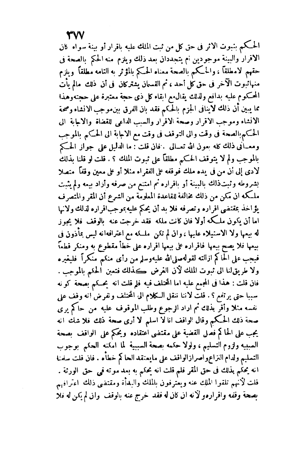 وَهَذَا مِمَّا يُبَيِّنُ أَنَّ ذَلِكَ لَا يُنَافِي الْجَزْمَ بِالْحُكْمِ فَقَدْ بَانَ الْفَرْقُ بَيْنَ مُوجَبِ الْإِنْشَاءِ، وَصِحَّةِ الْإِنْشَاءِ، وَمُوجَبِ الْإِقْرَارِ، وَصِحَّةِ الْإِقْرَارِ، وَالسَّبَبِ الدَّاعِي لِلْقُضَاةِ، وَالْإِجَابَةِ إلَى الْحُكْمِ بِالصِّحَّةِ فِي وَقْتٍ، وَإِلَى التَّوَقُّفِ فِي وَقْتٍ مَعَ الْإِجَابَةِ إلَى الْحُكْمِ بِالْمُوجَبِ، وَمَعَانِي ذَلِكَ كُلِّهِ بِعَوْنِ اللَّهِ تَعَالَى.