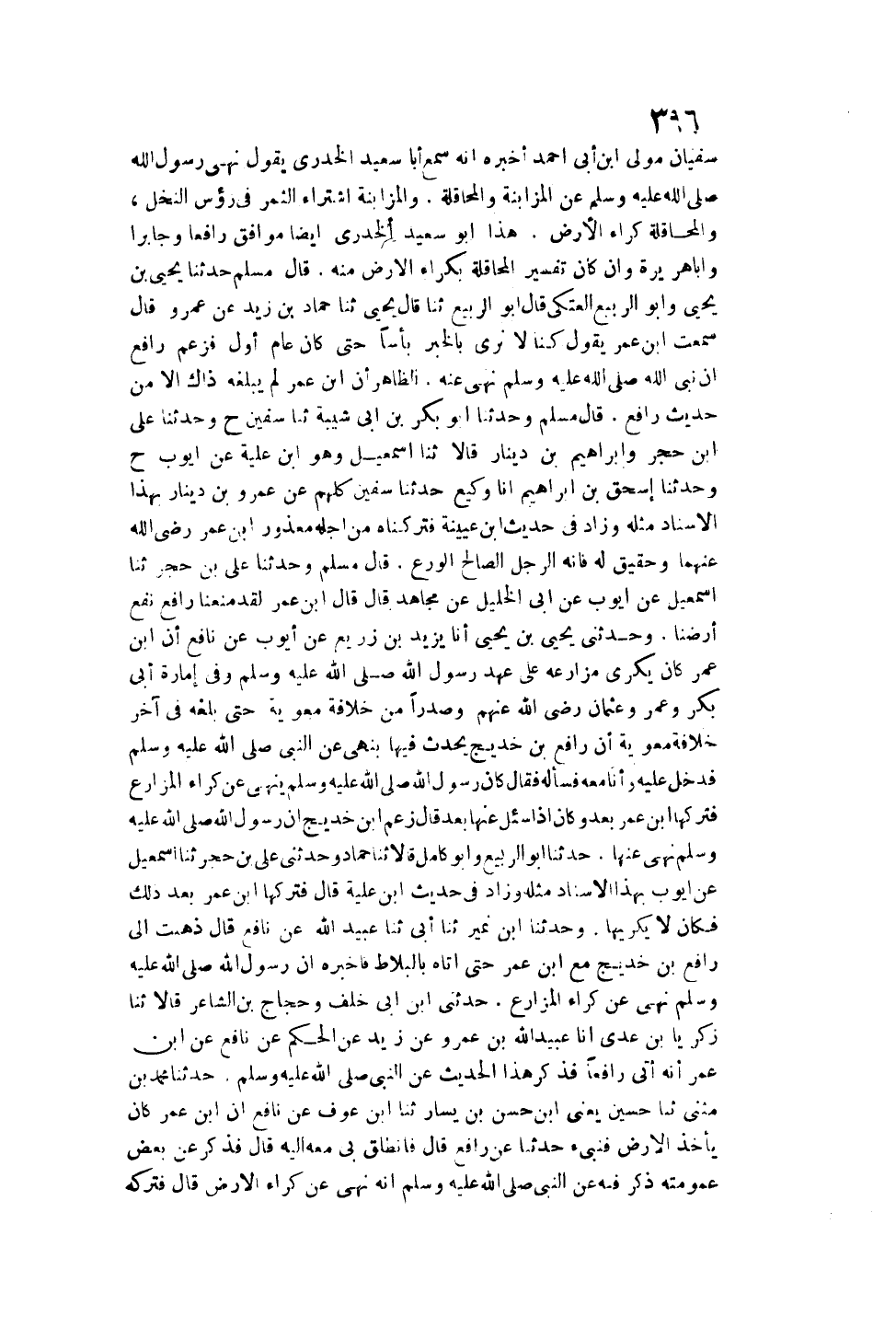 قَالَ مُسْلِمٌ: حَدَّثَنَا يَحْيَى بْنُ يَحْيَى وَأَبُو الرَّبِيعِ الْعَتَكِيُّ قَالَ أَبُو الرَّبِيعِ ثنا يَحْيَى ثنا حَمَّادُ بْنُ زَيْدٍ عَنْ عَمْرٍو قَالَ: سَمِعْت «ابْنَ عُمَرَ يَقُولُ: كُنَّا لَا نَرَى بِالْخَبَرِ بَأْسًا حَتَّى كَانَ عَامُ أَوَّلٍ فَزَعَمَ رَافِعٌ أَنَّ نَبِيَّ اللَّهِ - صَلَّى اللَّهُ عَلَيْهِ وَسَلَّمَ - نَهَى عَنْهُ» ، الظَّاهِرُ أَنَّ ابْنَ عُمَرَ لَمْ يَبْلُغْهُ ذَاكَ إلَّا مِنْ حَدِيثِ رَافِعٍ.