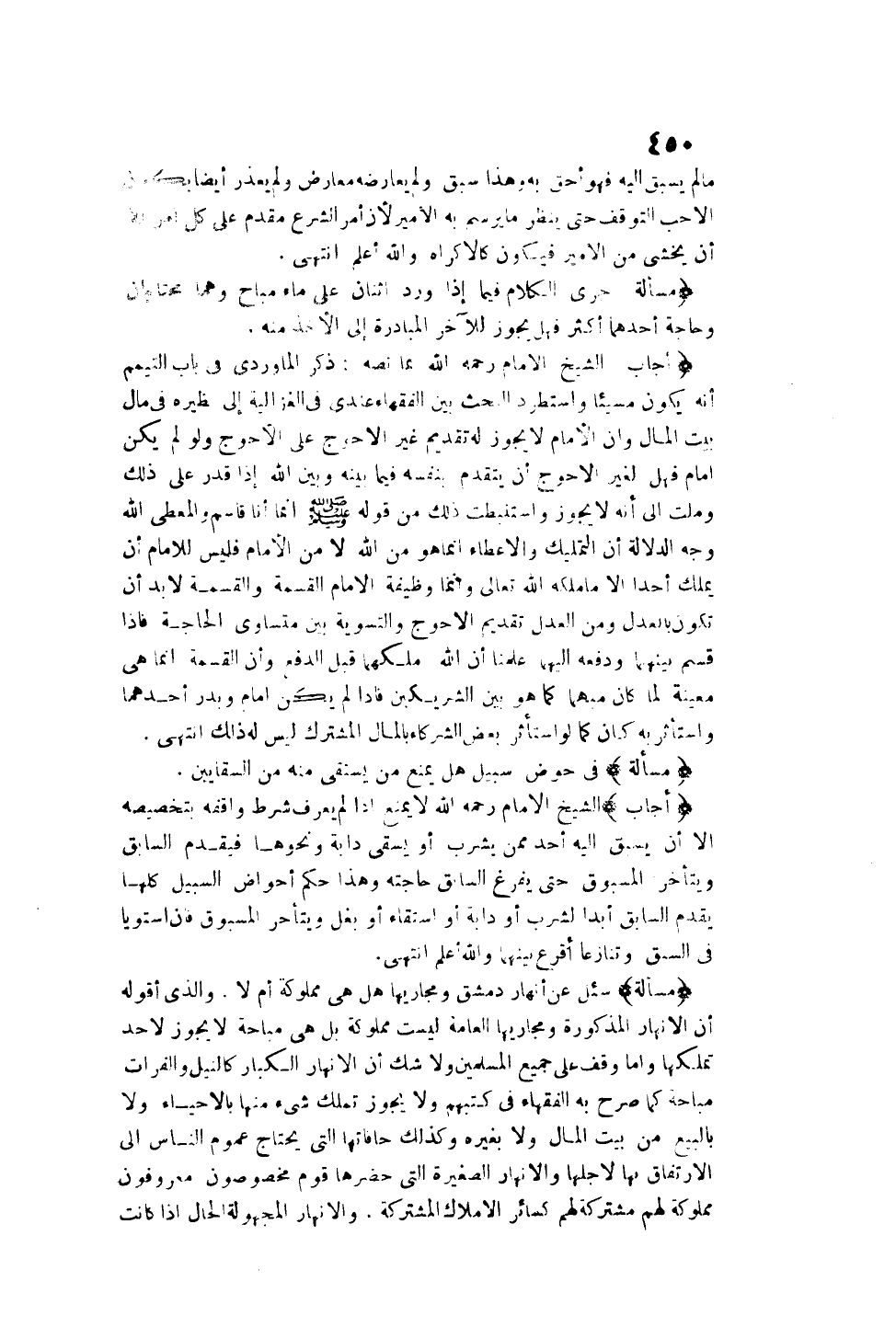 (مَسْأَلَةٌ) سُئِلَ عَنْ أَنْهَارِ دِمَشْقَ وَمَجَارِيهَا هَلْ هِيَ مَمْلُوكَةٌ أَمْ لَا؟ .