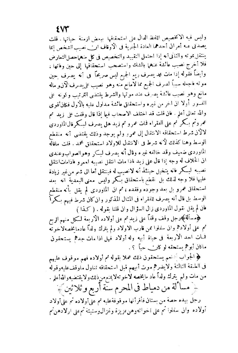 (مَسْأَلَةٌ مِنْ دِمْيَاطَ فِي الْمُحَرَّمِ سَنَةَ أَرْبَعٍ وَثَلَاثِينَ) .