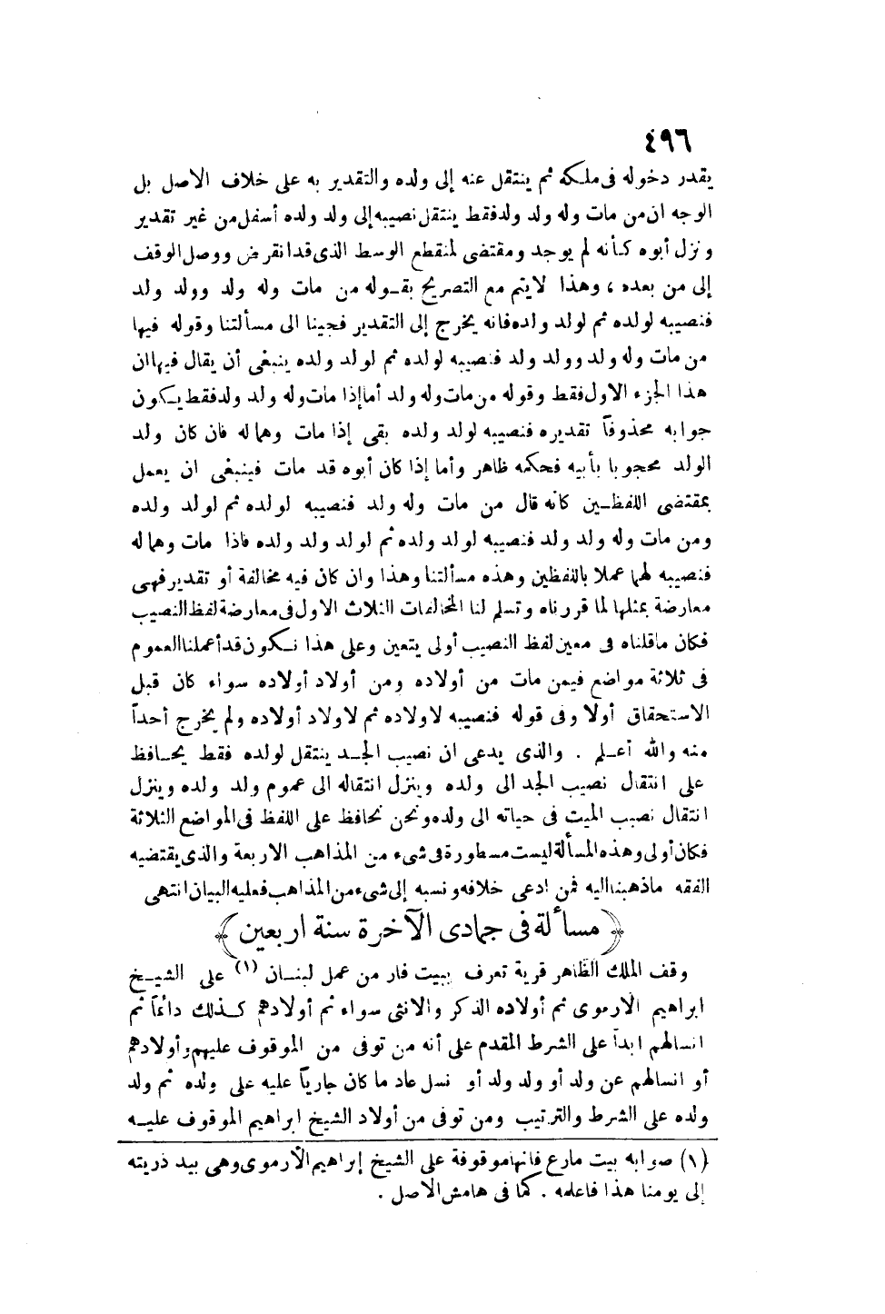 (مَسْأَلَةٌ فِي جُمَادَى الْآخِرَةِ سَنَةَ أَرْبَعِينَ)
