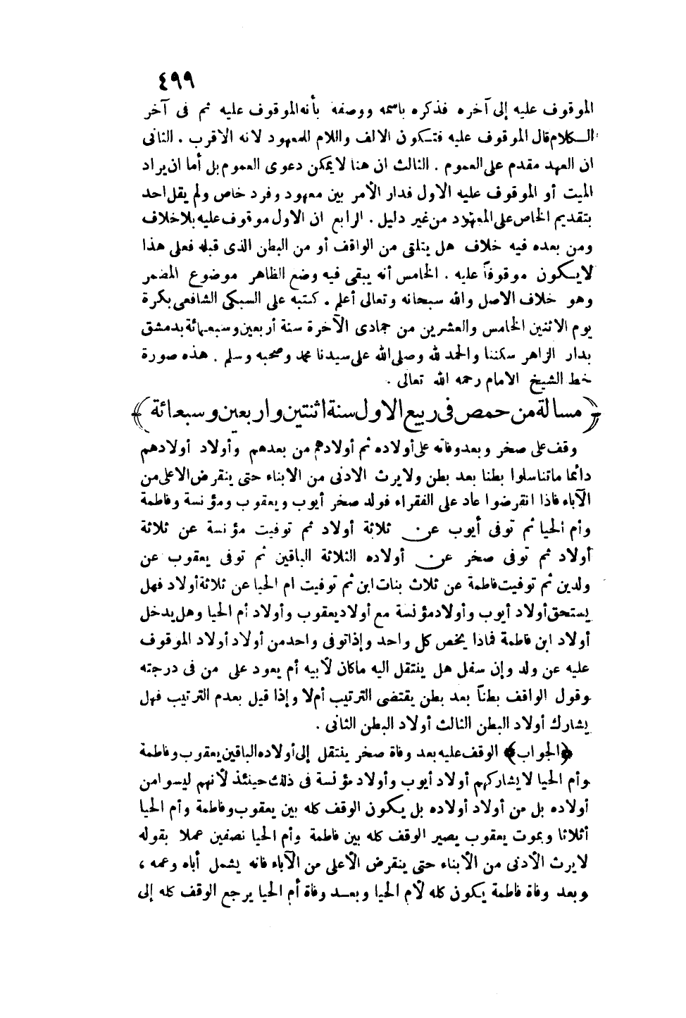 (مَسْأَلَةٌ مِنْ حِمْصَ فِي رَبِيعِ الْأَوَّلِ سَنَةَ اثْنَتَيْنِ وَأَرْبَعِينَ وَسَبْعِمِائَةٍ)