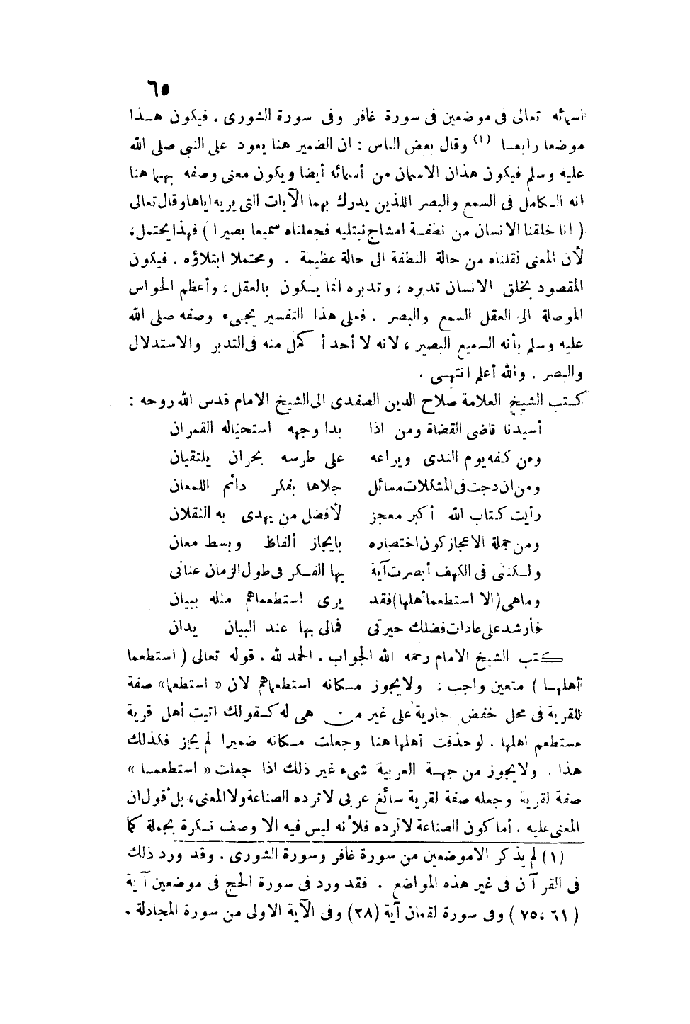 كَتَبَ الشَّيْخُ الْعَلَّامَةُ صَلَاحُ الدِّينِ الصَّفَدِيُّ إلَى الشَّيْخِ الْإِمَامِ قَدَّسَ اللَّهُ رُوحَهُ:
