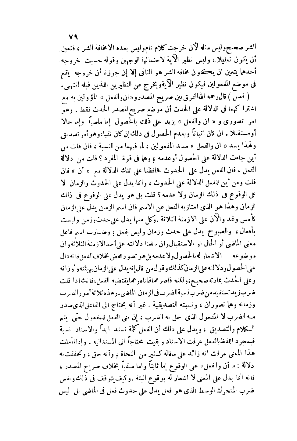 (فَصْلٌ) قَالَ - رَحِمَهُ اللَّهُ - الْفَرْقُ بَيْنَ صَرِيحِ الْمَصْدَرِ وَ " أَنْ وَالْفِعْلِ " الْمُؤَوَّلَيْنِ بِهِ مَعَ اشْتِرَاكِهِمَا فِي الدَّلَالَةِ عَلَى الْحَدَثِ أَنَّ مَوْضِعَ صَرِيحِ الْمَصْدَرِ الْحَدَثُ فَقَطْ. وَهُوَ أَمْرٌ تَصَوُّرِيٌّ وَ " أَنْ وَالْفِعْلُ " يَزِيدُ عَلَى ذَلِكَ بِالْحُصُولِ إمَّا مَاضِيًا وَإِمَّا حَالًا أَوْ مُسْتَقْبَلًا وَإِنْ كَانَ إثْبَاتًا وَبِعَدَمِ الْحُصُولِ فِي ذَلِكَ إنْ كَانَ نَفْيًا، وَهُوَ أَمْرٌ تَصْدِيقِيٌّ وَلِهَذَا يَسُدُّ " أَنْ وَالْفِعْلُ " مَسَدَّ الْمَفْعُولَيْنِ، لِمَا فِيهِمَا مِنْ النِّسْبَةِ، فَإِنْ قُلْت مِنْ أَيْنَ جَاءَتْ الدَّلَالَةُ عَلَى الْحُصُولِ أَوْ عَدَمِهِ؛ وَهُمَا فِي قُوَّةِ الْمُفْرَدِ؟ قُلْت مِنْ دَلَالَةِ الْفِعْلِ، فَإِنَّ الْفِعْلَ يَدُلُّ عَلَى الْحُدُوثِ فَحَافَظْنَا عَلَى تِلْكَ الدَّلَالَةِ مَعَ " أَنْ " فَإِنْ قُلْت وَمِنْ أَيْنَ لِلْفِعْلِ الدَّلَالَةُ عَلَى الْحُدُوثِ، وَإِنَّمَا يَدُلُّ عَلَى الْحُدُوثِ وَالزَّمَانِ لَا عَلَى الْوُقُوعِ فِي ذَلِكَ الزَّمَانِ وَلَا عَدَمِهِ؟ قُلْت بَلْ هُوَ يَدُلُّ عَلَى الْوُقُوعِ فِي ذَلِكَ الزَّمَانِ وَهَذَا هُوَ الَّذِي امْتَازَ بِهِ الْفِعْلُ عَنْ الِاسْمِ فَإِنَّ اسْمَ الزَّمَانِ يَدُلُّ عَلَى الزَّمَانِ كَأَمْسِ وَغَدٍ وَالْآنَ عَلَى الْأَزْمِنَةِ الثَّلَاثَةِ. وَكُلٌّ مِنْهَا يَدُلُّ عَلَى حَدَثٍ وَزَمَنٍ وَلَيْسَتْ بِأَفْعَالٍ، وَالصَّبُوحُ يَدُلُّ عَلَى حَدَثٍ وَزَمَانٍ وَلَيْسَ بِفِعْلٍ؛ وَضَارِبٌ اسْمُ فَاعِلِ مَعْنَى الْمَاضِي أَوْ الْحَالِ أَوْ الِاسْتِقْبَالِ وَإِنْ سَلَّمْنَا دَلَالَتَهُ عَلَى أَحَدِ الْأَزْمِنَةِ الثَّلَاثَةِ وَأَنَّ مَوْضُوعَهُ الْإِشْعَارُ لَهُ بِالْحُصُولِ وَلَا عَدَمِهِ بَلْ هُوَ تَصَوُّرٌ مَحْضٌ بِخِلَافِ الْفِعْلِ فَإِنَّهُ دَالٌّ عَلَى الْحُصُولِ وَدَلَالَتُهُ عَلَى الزَّمَانِ كَذَلِكَ وَقَوْلُ مَنْ قَالَ إنَّهُ يَدُلُّ عَلَى الزَّمَانِ بِهَيْئَتِهِ وَأَوْزَانِهِ وَعَلَى الْحَدَثِ بِمَادَّتِهِ صَحِيحٌ، وَلَكِنَّهُ قَاصِرٌ عَمَّا قُلْنَاهُ وَعَمَّا يَقْتَضِيهِ الْفِعْلُ، فَإِنَّك إذَا قُلْت ضَرَبَ زَيْدٌ تَسْتَفِيدُ مِنْ ضَرَبَ نِسْبَةَ الضَّرْبِ فِي الزَّمَانِ الْمَاضِي. وَهَذِهِ ثَلَاثَةُ أُمُورٍ وَالضَّرْبُ وَزَمَانُهُ وَهُمَا تَصَوُّرَانِ، وَنِسْبَتُهُ التَّصْدِيقِيَّةُ. غَيْرَ أَنَّهُ يَحْتَاجُ إلَى الْفَاعِلِ الَّذِي صَدَرَ مِنْهُ الضَّرْبُ لَا الْمَفْعُولِ الَّذِي حَلَّ بِهِ الضَّرْبُ، إنْ بَنَى الْفِعْلَ لِلْمَفْعُولِ حَتَّى يَتِمَّ الْكَلَامُ وَالتَّصْدِيقُ، وَيَدُلُّ عَلَى ذَلِكَ أَنَّ الْفِعْلَ كَلِمَةٌ تُسْنَدُ أَبَدًا وَالْإِسْنَادُ نِسْبَةٌ فَبِمُجَرَّدِ اللَّفْظِ بِالْفِعْلِ عَرَفْت الْإِسْنَادَ وَبَقِيت مُحْتَاجًا إلَى الْمُسْنَدِ إلَيْهِ. وَإِذَا تَأَمَّلْت هَذَا الْمَعْنَى عَرَفْت أَنَّهُ زَائِدٌ عَلَى مَا قَالَهُ كَثِيرٌ مِنْ النُّحَاةِ؛ وَأَنَّهُ حَقٌّ، وَتَحَقَّقَتْ بِهِ دَلَالَةُ: " أَنْ وَالْفِعْلِ " عَلَى الْوُقُوعِ إمَّا ثَابِتًا وَإِمَّا مَنْفِيًّا بِخِلَافِ صَرِيحِ الْمَصْدَرِ، فَإِنَّهُ إنَّمَا يَدُلُّ عَلَى الْمَعْنَى لَا إشْعَارَ لَهُ بِوُقُوعٍ أَلْبَتَّةَ. وَكَيْفَ يَتَوَقَّفُ فِي ذَلِكَ وَنَفْسُ ضَرَبَ الْمُتَحَرِّكِ الْوَسَطِ الَّذِي هُوَ فِعْلٌ يَدُلُّ عَلَى حُدُوثِ فِعْلٍ فِي الْمَاضِي بَلْ لَيْسَ