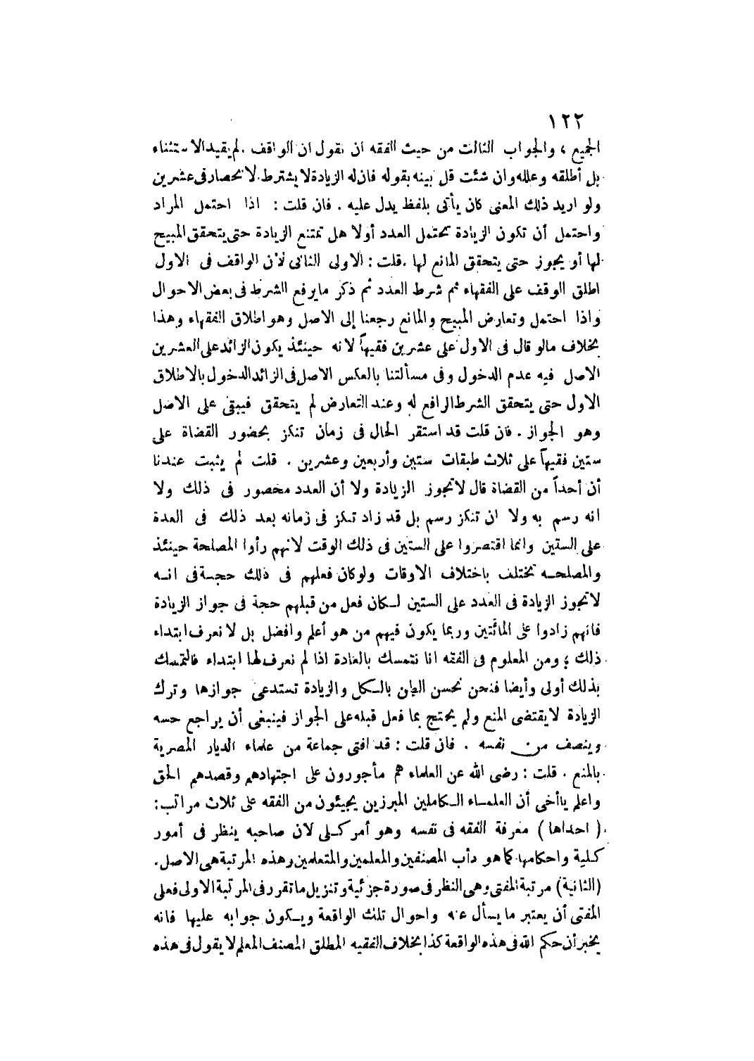 الْجَمِيعِ، وَالْجَوَابُ الثَّالِثُ مِنْ حَيْثُ الْفِقْهُ أَنْ يَقُولَ: إنَّ الْوَاقِفَ.