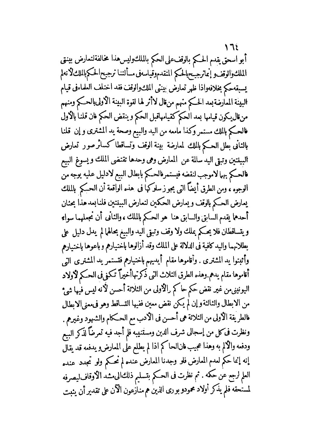 وَنَظَرْت فِي كُلٍّ مِنْ إسْجَالَيْ شَرَفِ الدِّينِ وَمُسْتَنِيبِهِ فَلَمْ أَجِدْ فِيهِ تَعَرُّضًا لِذِكْرِ الْبَيْعِ وَدَفْعِهِ وَالْأَلَمِ بِهِ وَهَذَا عَجِيبٌ فَإِنَّ الْحَاكِمَ إذَا لَمْ يَطَّلِعْ عَلَى الْمُعَارِضِ وَيَدْفَعْهُ قَدْ يُقَالُ إنَّهُ إنَّمَا حَكَمَ لِعَدَمِ الْمُعَارِضِ فَلَوْ وَجَدْنَا الْمُعَارِضَ عِنْدَهُ لَمْ نَحْكُمْ وَلَوْ تَجَدَّدَ عِنْدَهُ الْعِلْمُ لَرَجَعَ عَنْ حُكْمِهِ.