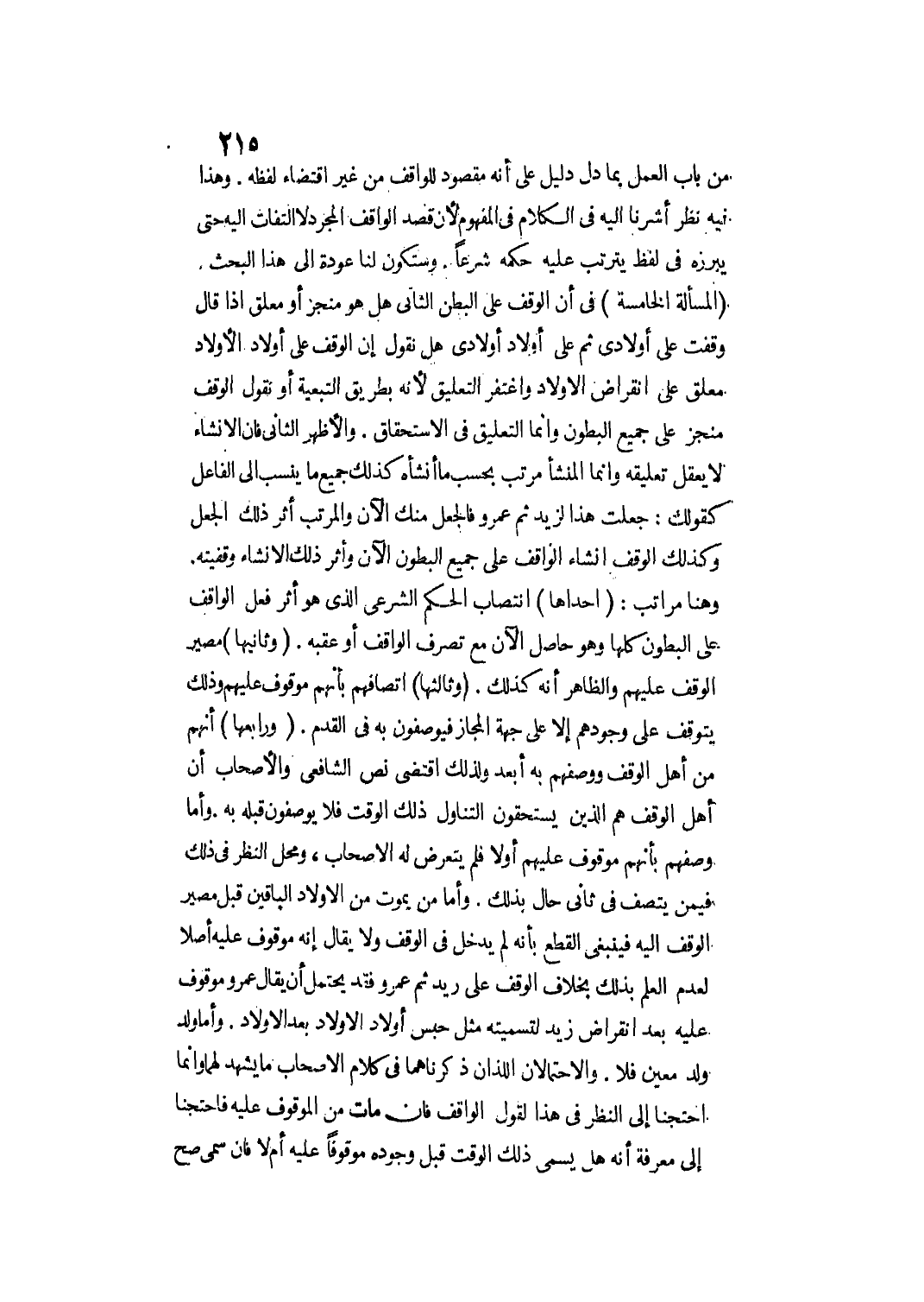 (الْمَسْأَلَةُ الْخَامِسَةُ) فِي أَنَّ الْوَقْفَ عَلَى الْبَطْنِ الثَّانِي هَلْ هُوَ مُنْجَزٌ أَوْ مُعَلَّقٌ إذَا قَالَ وَقَفْت عَلَى أَوْلَادِي ثُمَّ عَلَى أَوْلَادِ أَوْلَادِي هَلْ نَقُولُ إنَّ الْوَقْفَ عَلَى أَوْلَادِ الْأَوْلَادِ مُعَلَّقٌ عَلَى انْقِرَاضِ الْأَوْلَادِ وَاغْتُفِرَ التَّعْلِيقُ؛ لِأَنَّهُ بِطَرِيقِ التَّبَعِيَّةِ أَوْ نَقُولُ الْوَقْفُ مُنْجَزٌ عَلَى جَمِيعِ الْبُطُونِ وَإِنَّمَا التَّعْلِيقُ فِي الِاسْتِحْقَاقِ.