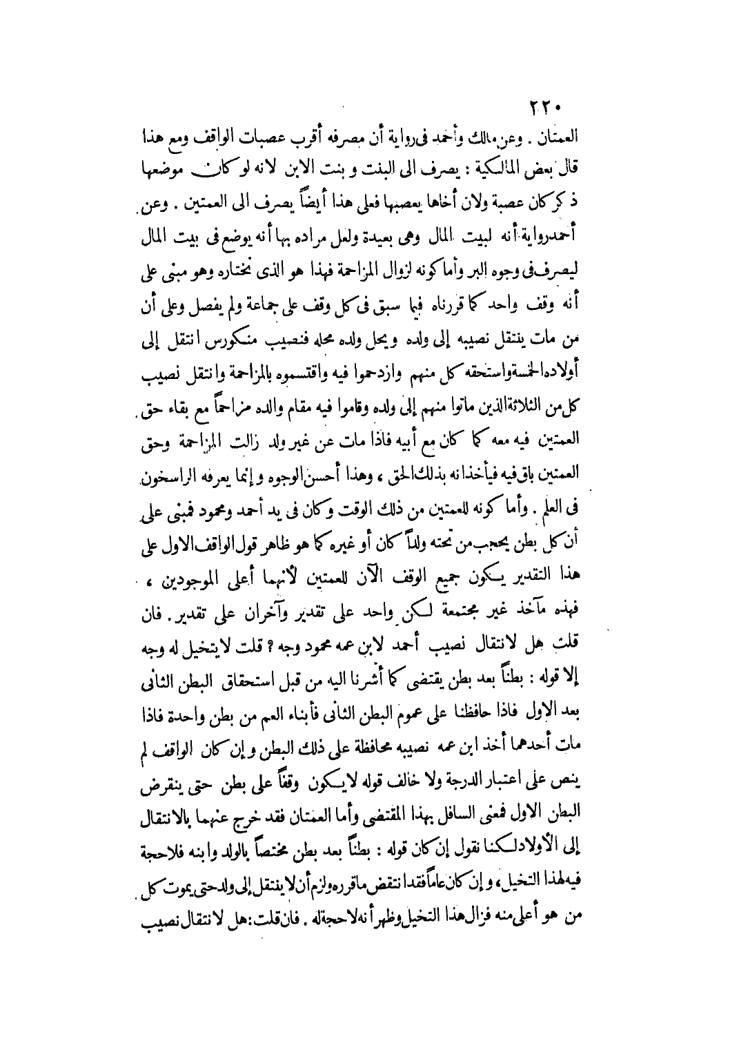وَأَمَّا كَوْنُهُ لِلْعَمَّتَيْنِ مِنْ ذَلِكَ الْوَقْتِ وَكَانَ فِي يَدِ أَحْمَدَ وَمَحْمُودٍ فَمَبْنِيٌّ عَلَى أَنَّ كُلَّ بَطْنٍ يَحْجُبُ مَنْ تَحْتَهُ وَلَدًا كَانَ أَوْ غَيْرَهُ كَمَا هُوَ ظَاهِرُ قَوْلِ الْوَاقِفِ الْأَوَّلِ، عَلَى هَذَا التَّقْدِيرِ يَكُونُ جَمِيعُ الْوَقْفِ الْآنَ لِلْعَمَّتَيْنِ؛ لِأَنَّهُمَا أَعْلَى الْمَوْجُودِينَ، فَهَذِهِ مَآخِذُ غَيْرُ مُجْتَمِعَةٍ لَكِنْ وَاحِدٌ عَلَى تَقْدِيرٍ وَآخَرَانِ عَلَى تَقْدِيرٍ.