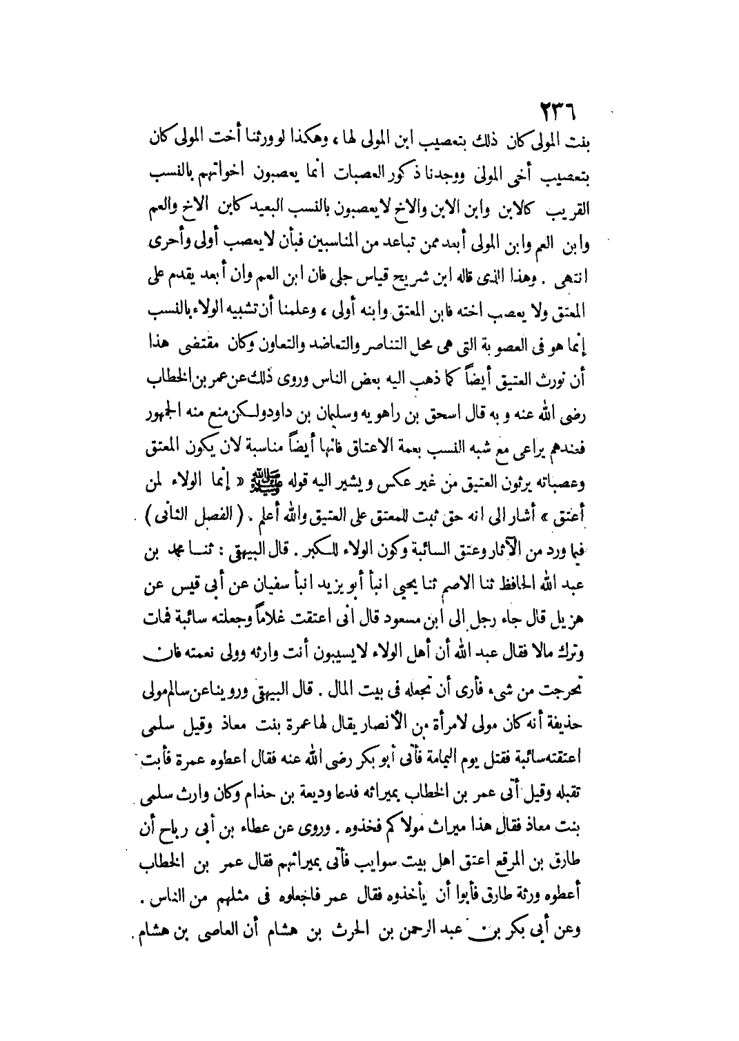 الْفَصْلُ الثَّانِي فِيمَا وَرَدَ مِنْ الْآثَارِ وَعِتْقِ السَّائِبَةِ وَكَوْنِ الْوَلَاءِ لِلْكِبَرِ.