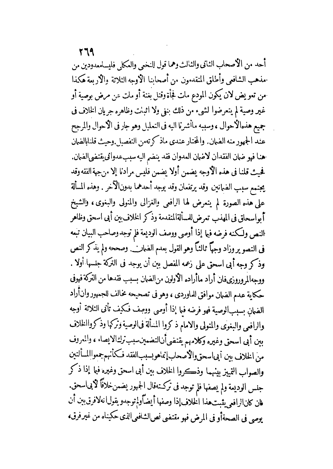 أَحَدٌ مِنْ الْأَصْحَابِ الثَّانِيَ وَالثَّالِثَ وَهُمَا قَوْلُ النَّخَعِيِّ وَالْعُكْلِيِّ فَلَيْسَا مَعْدُودَيْنِ مِنْ مَذْهَبِ الشَّافِعِيِّ وَأَطْلَقَ الْمُتَقَدِّمُونَ مِنْ أَصْحَابِنَا الْأَوْجُهَ الثَّلَاثَةَ وَالْأَرْبَعَةَ هَكَذَا مِنْ تَعْوِيضٍ لَأَنْ يَكُونَ الْمُودِعُ مَاتَ فَجْأَةً وَقُتِلَ بَغْتَةً أَوْ مَاتَ عَنْ مَرَضٍ بِوَصِيَّةٍ أَوْ غَيْرِ وَصِيَّةٍ لَمْ يَتَعَرَّضُوا لِشَيْءٍ مِنْ ذَلِكَ بِنَفْيٍ وَلَا إثْبَاتٍ، وَظَاهِرُهُ جَرَيَانُ الْخِلَافِ فِي جَمِيعِ هَذِهِ الْأَحْوَالِ، وَسَبَبُهُ مَا أَشَرْنَا إلَيْهِ فِي التَّعْلِيلِ وَهُوَ جَارٍ فِي الْأَحْوَالِ وَالْمُرَجَّحُ عِنْدَ الْجُمْهُورِ مِنْهُ الضَّمَانُ. وَالْمُخْتَارُ عِنْدِي مَا ذَكَرْته مِنْ التَّفْصِيلِ.