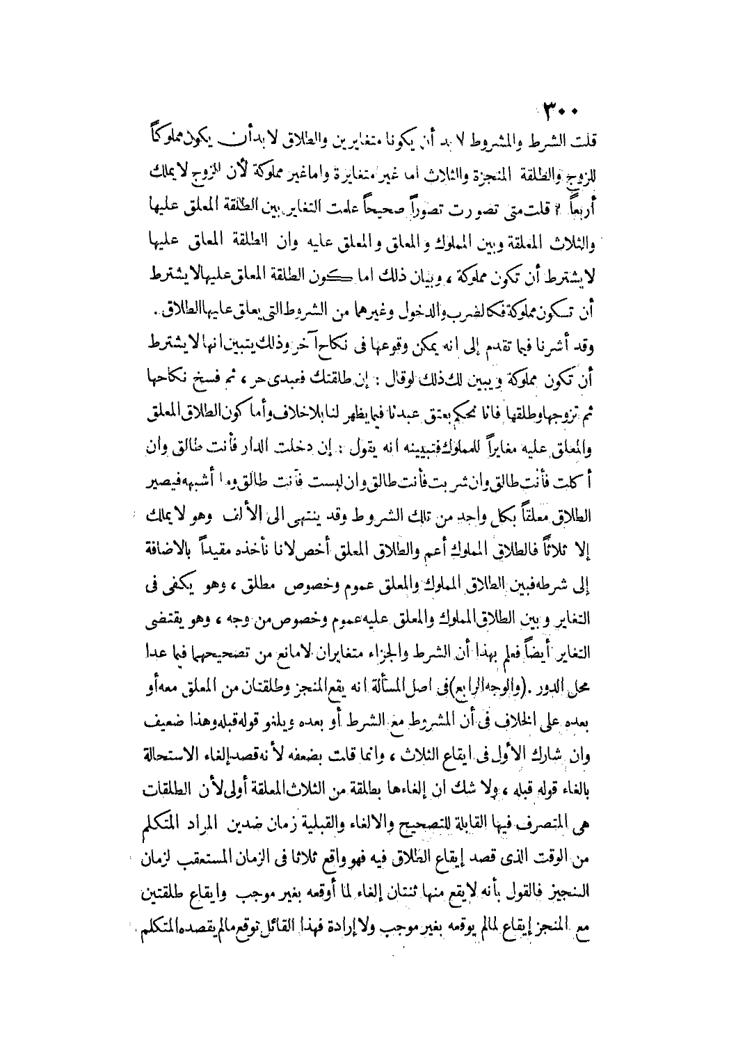 قُلْت مَتَى تَصَوَّرْتَ تَصَوُّرًا صَحِيحًا عَلِمْت التَّغَايُرَ بَيْنَ الطَّلْقَةِ الْمُعَلَّقِ عَلَيْهَا وَالثَّلَاثِ الْمُعَلَّقَةِ وَبَيْنَ الْمَمْلُوكِ وَالْمُعَلَّقِ وَالْمُعَلَّقِ عَلَيْهِ وَإِنَّ الطَّلْقَةَ الْمُعَلَّقَ عَلَيْهَا لَا يُشْتَرَطُ أَنْ تَكُونَ مَمْلُوكَةً، وَبَيَانُ ذَلِكَ إمَّا كَوْنُ الطَّلْقَةِ الْمُعَلَّقِ عَلَيْهَا لَا يُشْتَرَطُ أَنْ تَكُونَ مَمْلُوكَةً فَكَالضَّرْبِ وَالدُّخُولِ وَغَيْرِهِمَا مِنْ الشُّرُوطِ الَّتِي يُعَلَّقُ عَلَيْهَا الطَّلَاقُ.