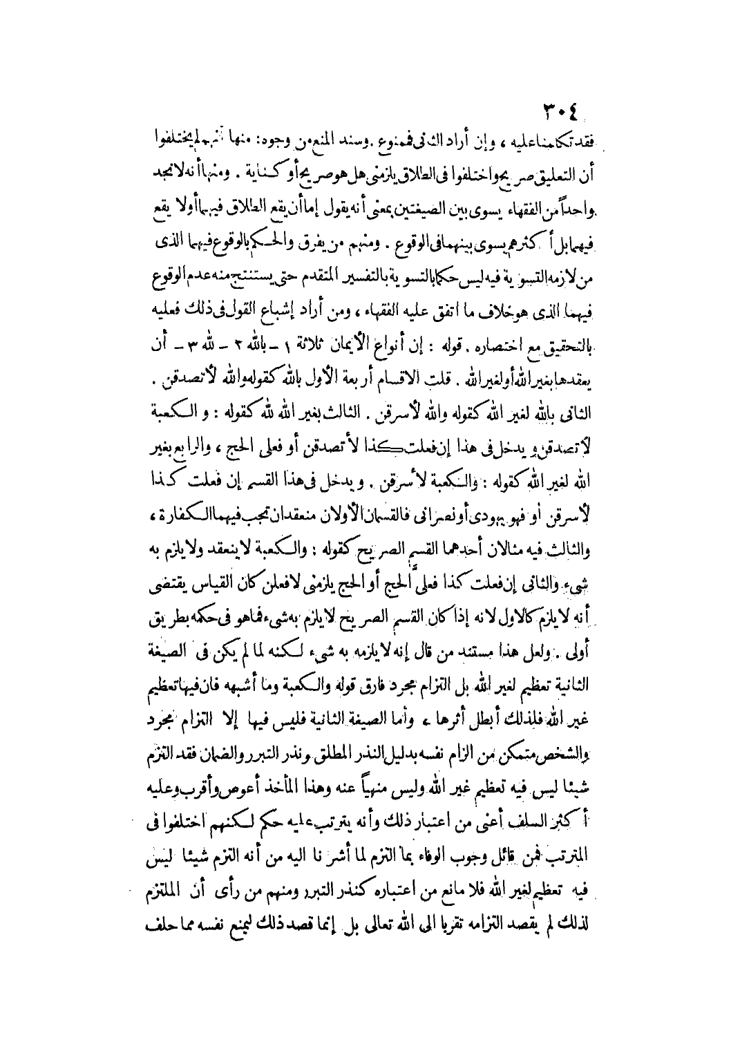 فَقَدْ تَكَلَّمْنَا عَلَيْهِ، وَإِنْ أَرَادَ الثَّانِيَ فَمَمْنُوعٌ. وَسَنَدُ الْمَنْعِ مِنْ وُجُوهٍ: مِنْهَا أَنَّهُمْ لَمْ يَخْتَلِفُوا أَنَّ التَّعْلِيقَ صَرِيحٌ وَاخْتَلَفُوا فِي الطَّلَاقِ يَلْزَمُنِي هَلْ هُوَ صَرِيحٌ أَوْ كِنَايَةٌ. وَمِنْهَا أَنَّهُ لَا نَجِدُ وَاحِدًا مِنْ الْفُقَهَاءِ يُسَوِّي بَيْنَ الصِّيغَتَيْنِ بِمَعْنَى أَنَّهُ يَقُولُ إمَّا أَنْ يَقَعَ الطَّلَاقُ فِيهِمَا أَوْ لَا يَقَعُ فِيهِمَا بَلْ أَكْثَرُهُمْ يُسَوِّي بَيْنَهُمَا فِي الْوُقُوعِ. وَمِنْهُمْ مَنْ يُفَرِّقُ وَالْحُكْمُ بِالْوُقُوعِ فِيهِمَا الَّذِي مِنْ لَازِمِهِ التَّسْوِيَةُ فِيهِ لَيْسَ حُكْمًا بِالتَّسْوِيَةِ بِالتَّفْسِيرِ الْمُتَقَدَّمِ حَتَّى يَسْتَنْتِجَ مِنْهُ عَدَمَ الْوُقُوعِ فِيهِمَا الَّذِي هُوَ خِلَافُ مَا اتَّفَقَ عَلَيْهِ الْفُقَهَاءُ، وَمَنْ أَرَادَ إشْبَاعَ الْقَوْلِ فِي ذَلِكَ فَعَلَيْهِ بِالتَّحْقِيقِ مَعَ اخْتِصَارِهِ.