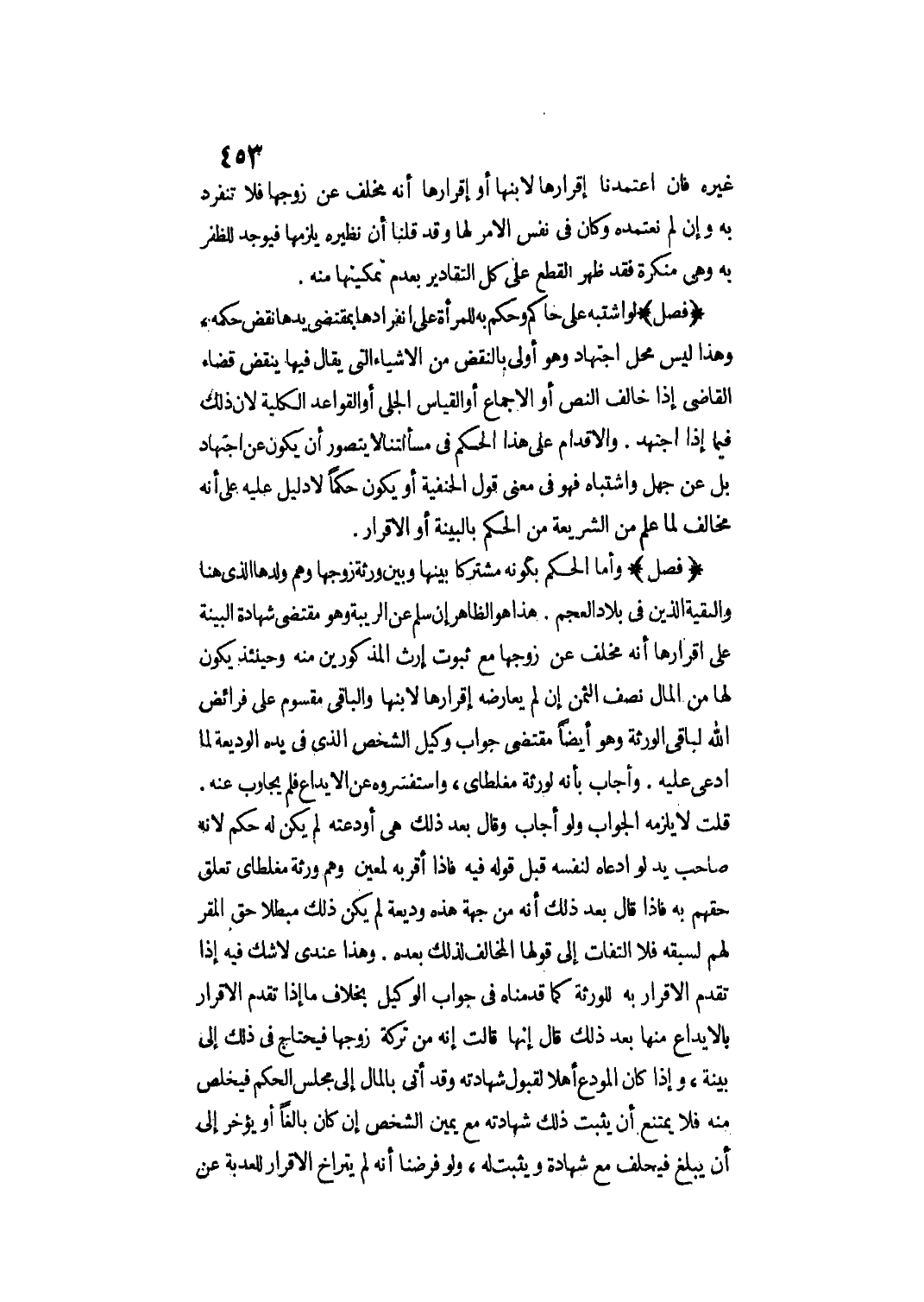 وَالْإِقْدَامُ عَلَى هَذَا الْحُكْمِ فِي مَسْأَلَتِنَا لَا يُتَصَوَّرُ أَنْ يَكُونَ عَنْ اجْتِهَادٍ بَلْ عَنْ جَهْلٍ وَاشْتِبَاهٍ فَهُوَ فِي مَعْنَى قَوْلِ الْحَنَفِيَّةِ أَوْ يَكُونُ حُكْمًا لَا دَلِيلَ عَلَيْهِ عَلَى أَنَّهُ مُخَالِفٌ لِمَا عُلِمَ مِنْ الشَّرِيعَةِ مِنْ الْحُكْمِ بِالْبَيِّنَةِ أَوْ الْإِقْرَارِ.