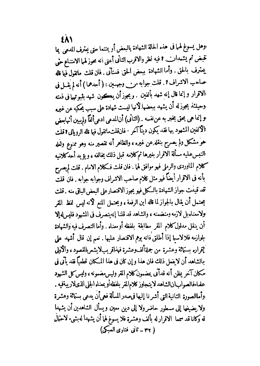 (الثَّانِي) أَنَّ الْمُدَّعِيَ ادَّعَى أَلْفًا وَلَمْ يُبَيِّنْ أَنَّهَا بَعْضُ الْأَلْفَيْنِ الْمَشْهُودِ بِهَا فَقَدْ يَكُونُ دَيْنًا آخَرَ.