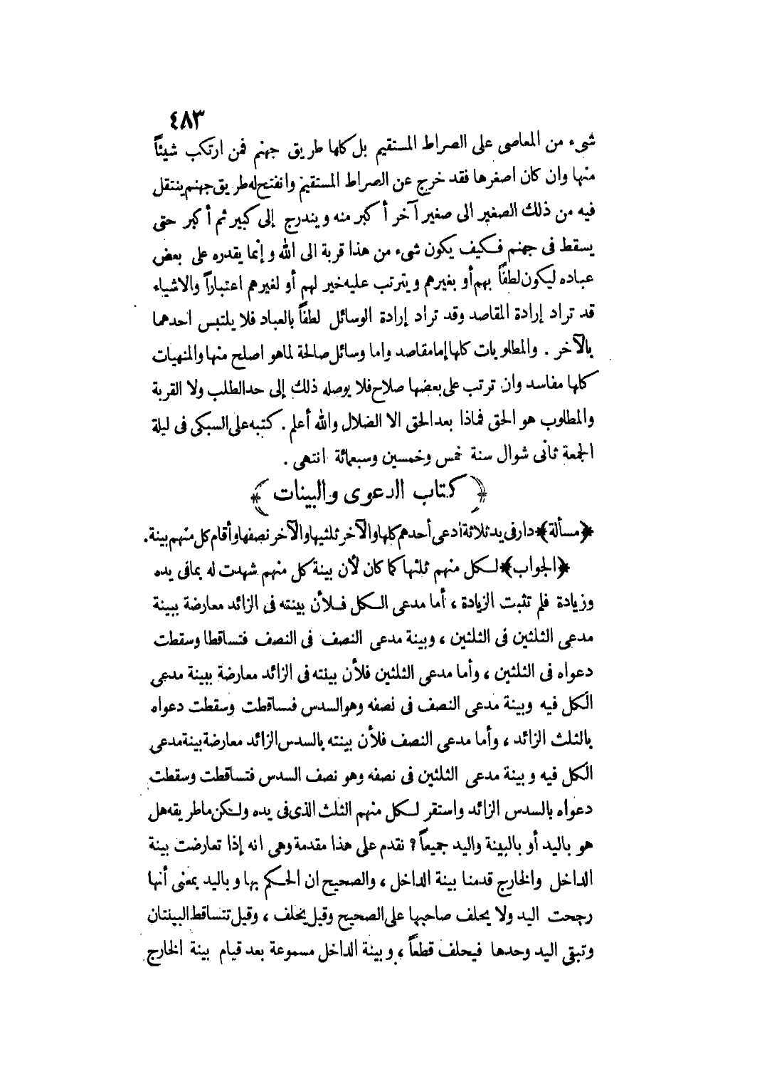 كَتَبَهُ عَلِيٌّ السُّبْكِيُّ فِي لَيْلَةِ الْجُمُعَةِ ثَانِي شَوَّالٍ سَنَةَ خَمْسٍ وَخَمْسِينَ وَسَبْعِمِائَةٍ. انْتَهَى.
