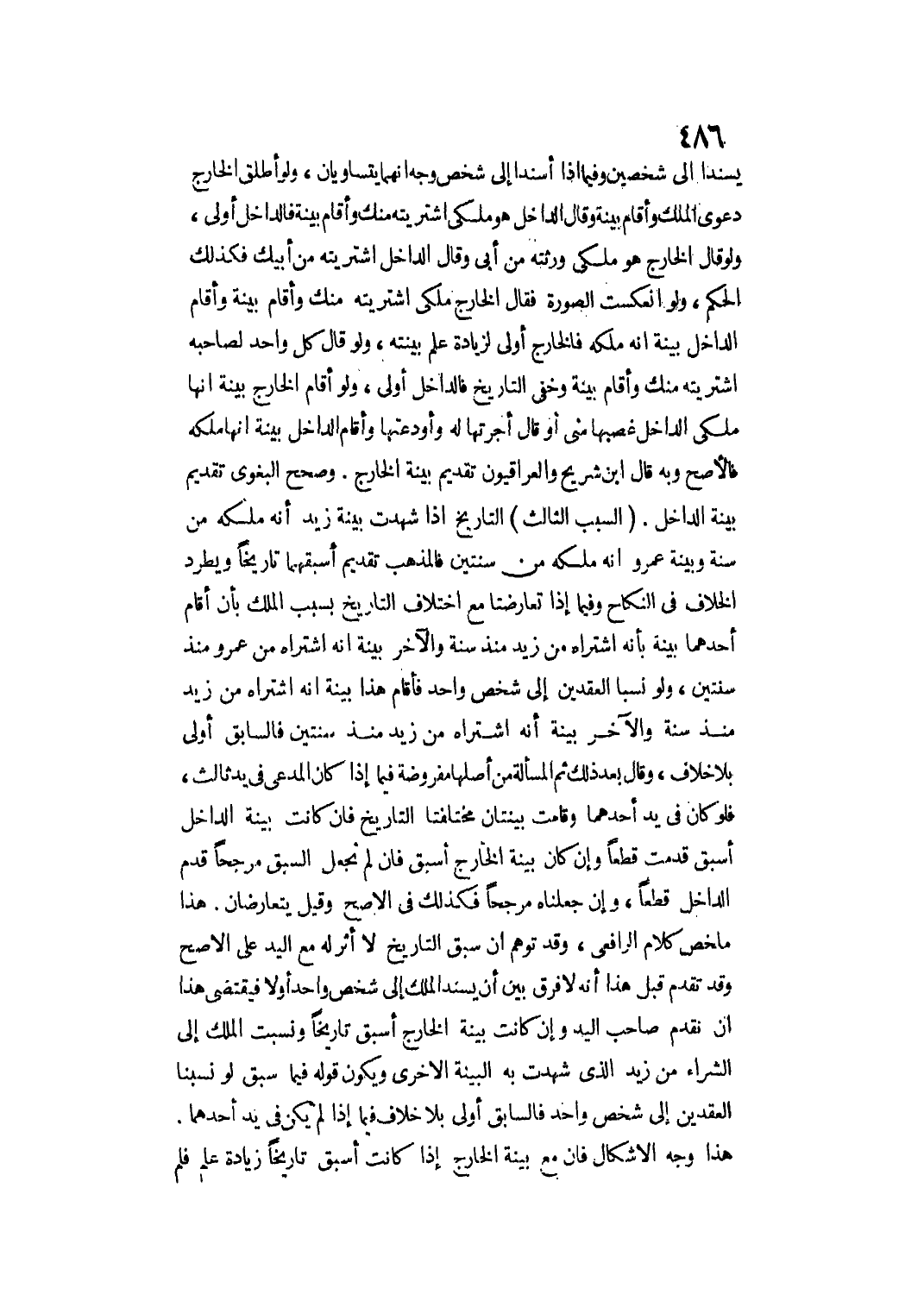 هَذَا وَجْهُ الْإِشْكَالِ فَإِنَّ مَعَ بَيِّنَةِ الْخَارِجِ إذَا كَانَتْ أَسْبَقَ تَارِيخًا زِيَادَةَ عِلْمٍ فَلِمَ