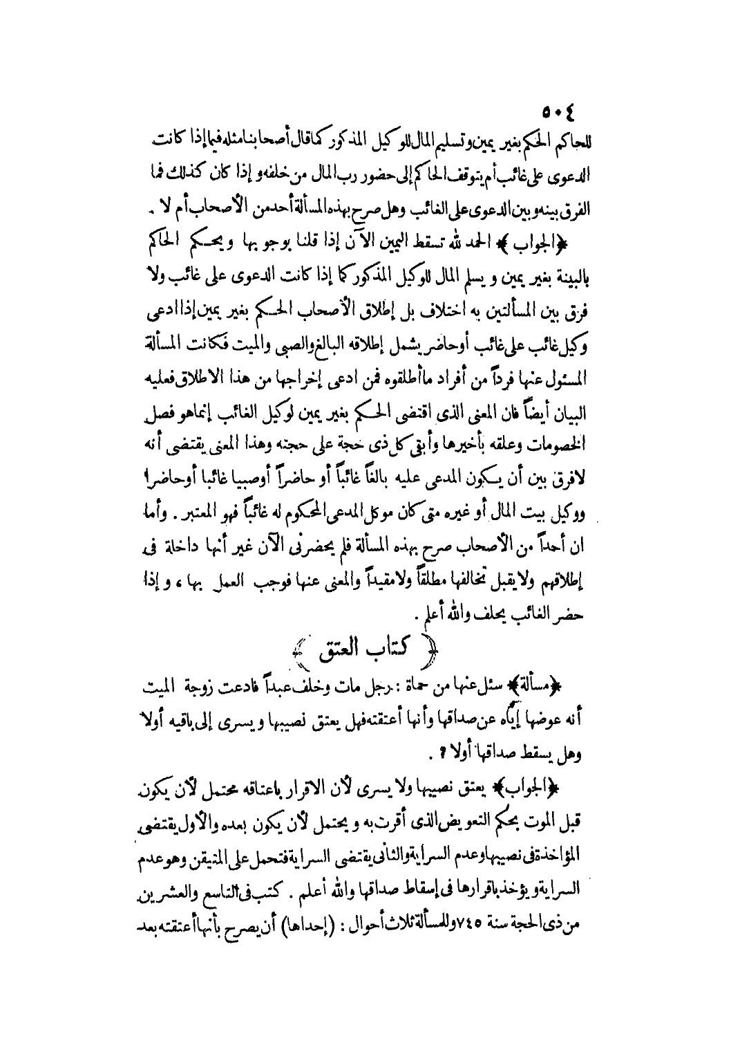 كُتِبَ فِي التَّاسِعِ وَالْعِشْرِينَ مِنْ ذِي الْحِجَّةِ سَنَةَ 745 وَلِلْمَسْأَلَةِ ثَلَاثُ أَحْوَالٍ: