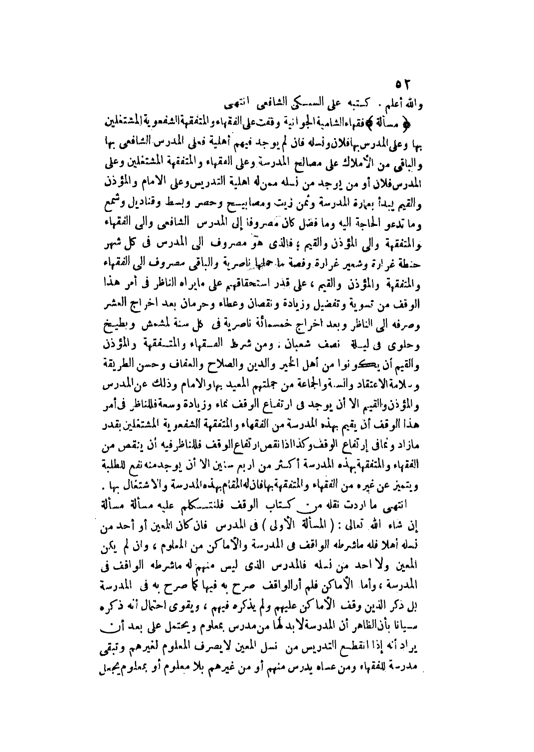 انْتَهَى مَا أَرَدْت نَقْلُهُ مِنْ كِتَابِ الْوَقْفِ فَلْنَتَكَلَّمْ عَلَيْهِ مَسْأَلَةً مَسْأَلَةً إنْ شَاءَ اللَّهُ تَعَالَى: