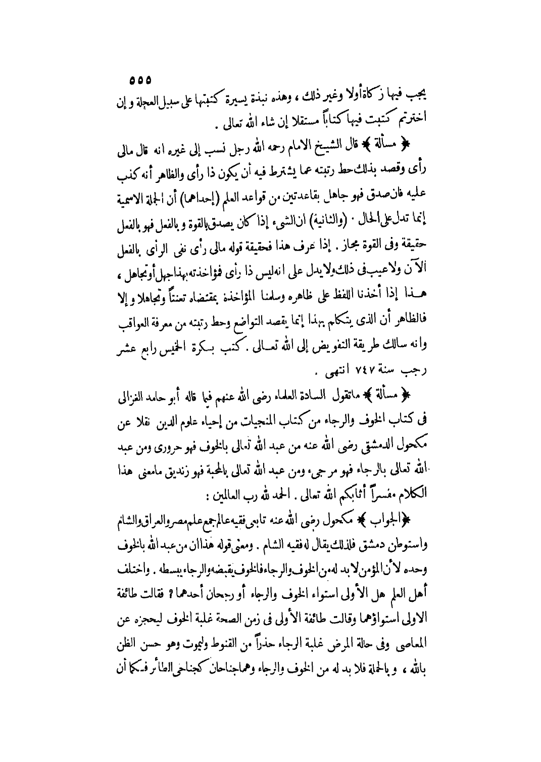 مَا تَقُولُ السَّادَةُ الْعُلَمَاءُ - رَضِيَ اللَّهُ عَنْهُمْ - فِيمَا قَالَهُ أَبُو حَامِدٍ الْغَزَالِيُّ فِي كِتَابِ الْخَوْفِ وَالرَّجَاءِ مِنْ كِتَابِ الْمُنَجِّيَّاتِ مِنْ إحْيَاءِ عُلُومِ الدِّينِ نَقْلًا عَنْ مَكْحُولٍ الدِّمَشْقِيِّ - رَضِيَ اللَّهُ عَنْهُ - مَنْ عَبَدَ اللَّه تَعَالَى بِالْخَوْفِ فَهُوَ حَرُورِيٌّ وَمَنْ عَبَدَ اللَّه تَعَالَى بِالرَّجَاءِ فَهُوَ مُرْجِئٌ وَمَنْ عَبَدَ اللَّه تَعَالَى بِالْمَحَبَّةِ فَهُوَ زِنْدِيقٌ مَا مَعْنَى هَذَا الْكَلَامِ مُفَسَّرًا أَثَابَكُمْ اللَّهُ تَعَالَى. الْحَمْدُ لِلَّهِ رَبِّ الْعَالَمِينَ: