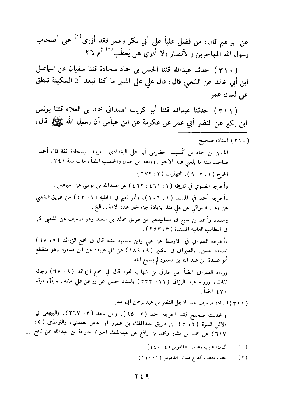 310 - حَدَّثَنَا عَبْدُ اللَّهِ قثنا الْحَسَنُ بْنُ حَمَّادٍ سَجَّادَةُ قثنا سُفْيَانُ، عَنْ إِسْمَاعِيلَ بْنِ أَبِي خَالِدٍ، عَنِ الشَّعْبِيِّ قَالَ: قَالَ عَلِيٌّ عَلَى الْمِنْبَرِ: §مَا كُنَّا نُبْعِدُ أَنَّ السَّكِينَةَ تَنْطِقُ عَلَى لِسَانِ عُمَرَ.