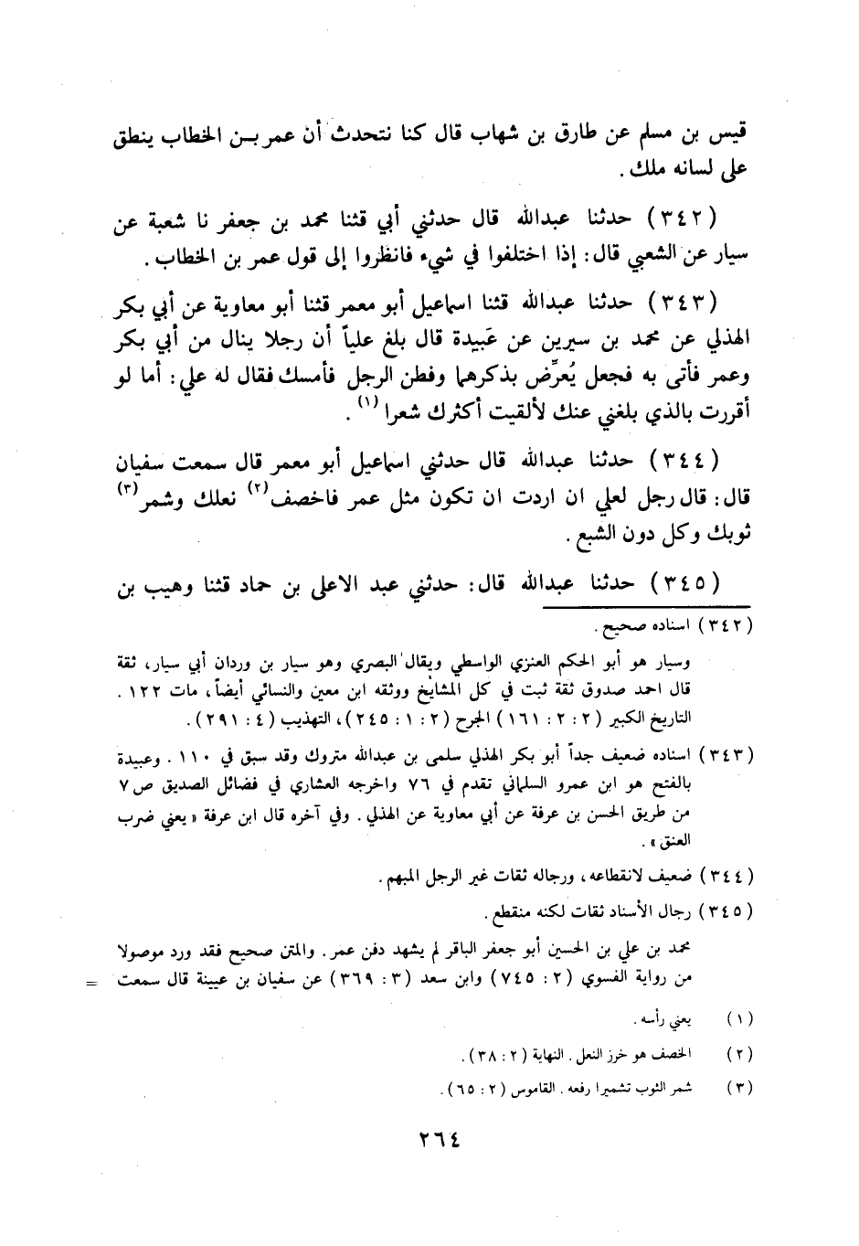 342 - حَدَّثَنَا عَبْدُ اللَّهِ قَالَ: حَدَّثَنِي أَبِي، قثنا مُحَمَّدُ بْنُ جَعْفَرٍ، نا شُعْبَةُ، عَنْ سَيَّارٍ، عَنِ الشَّعْبِيِّ قَالَ: §إِذَا اخْتَلَفُوا فِي شَيْءٍ فَانْظُرُوا إِلَى قَوْلِ عُمَرَ بْنِ الْخَطَّابِ.